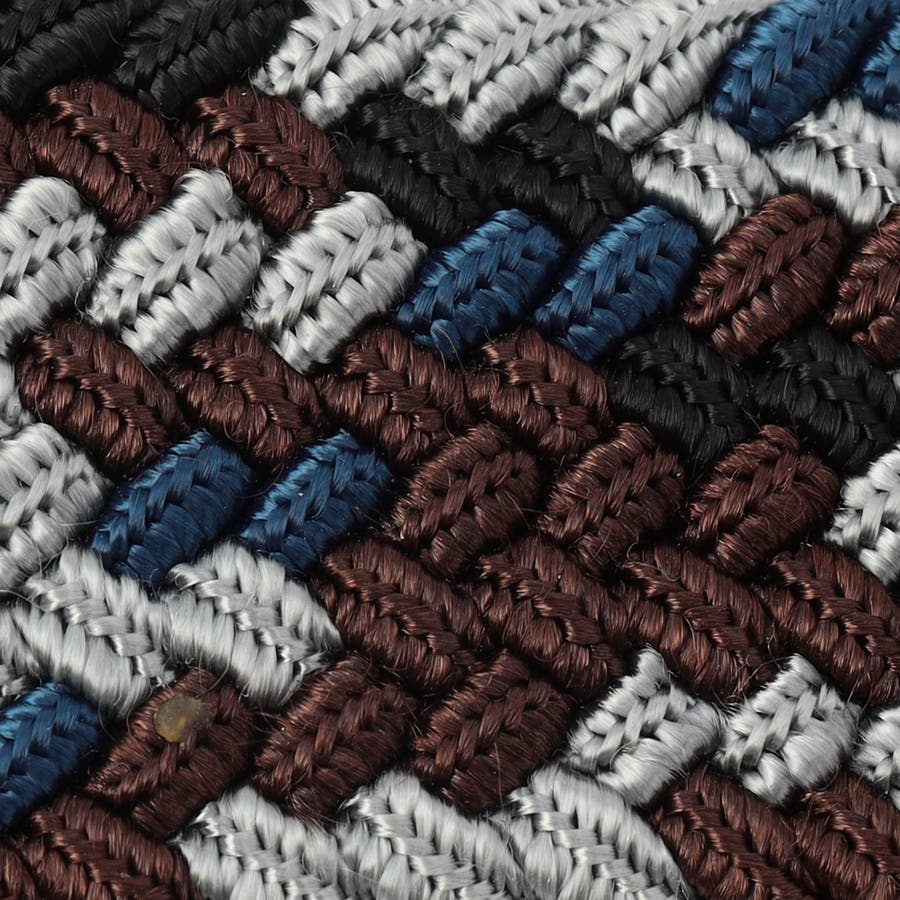 帯部分にはゴムを編み込んだストレッチメッシュテープを採用。どのカラーも配色にして奥行きのある見え方にしています。首革と剣先には牛革を使用し、強度を高めるとともに落ち着いた高級感を演出します。