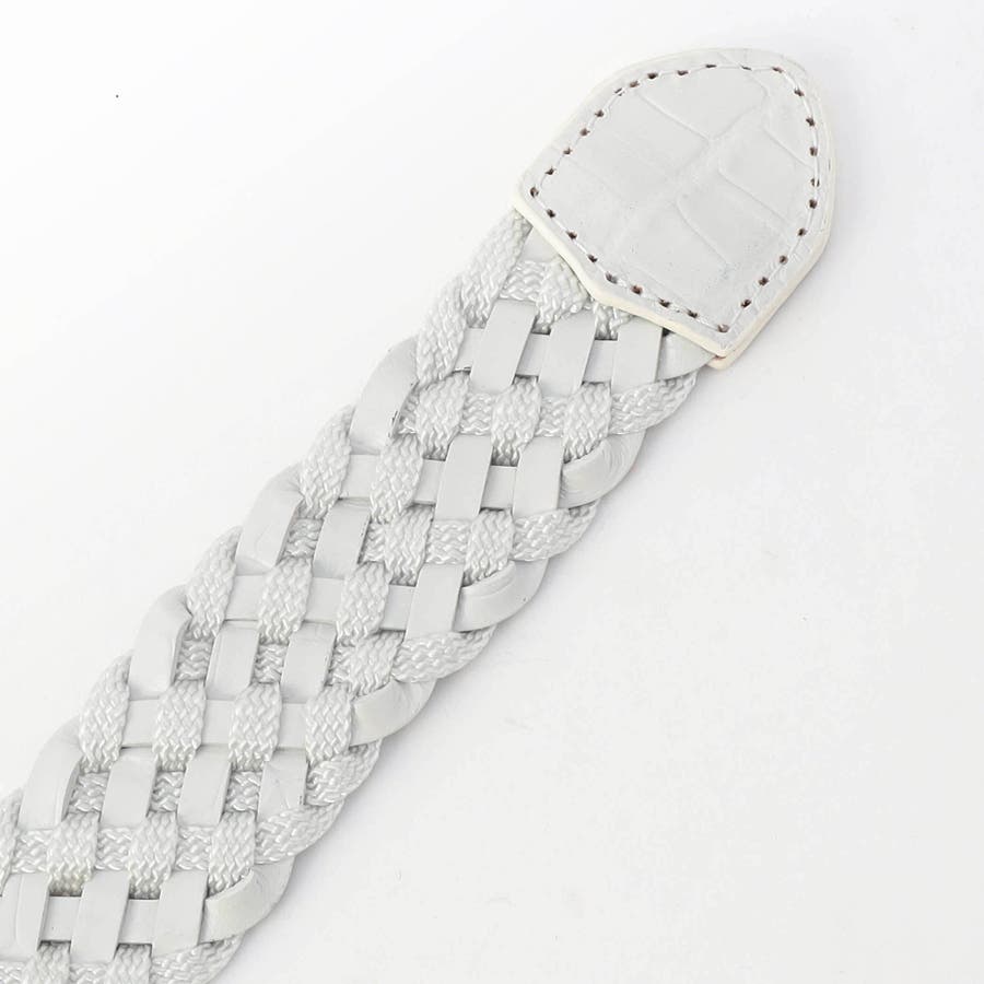 職人の手によってタンニン鞣しされたクロコ型押しのイタリアンレザーと、日本製ナイロンテープを組み合わせた高級感の溢れるメッシュベルト。