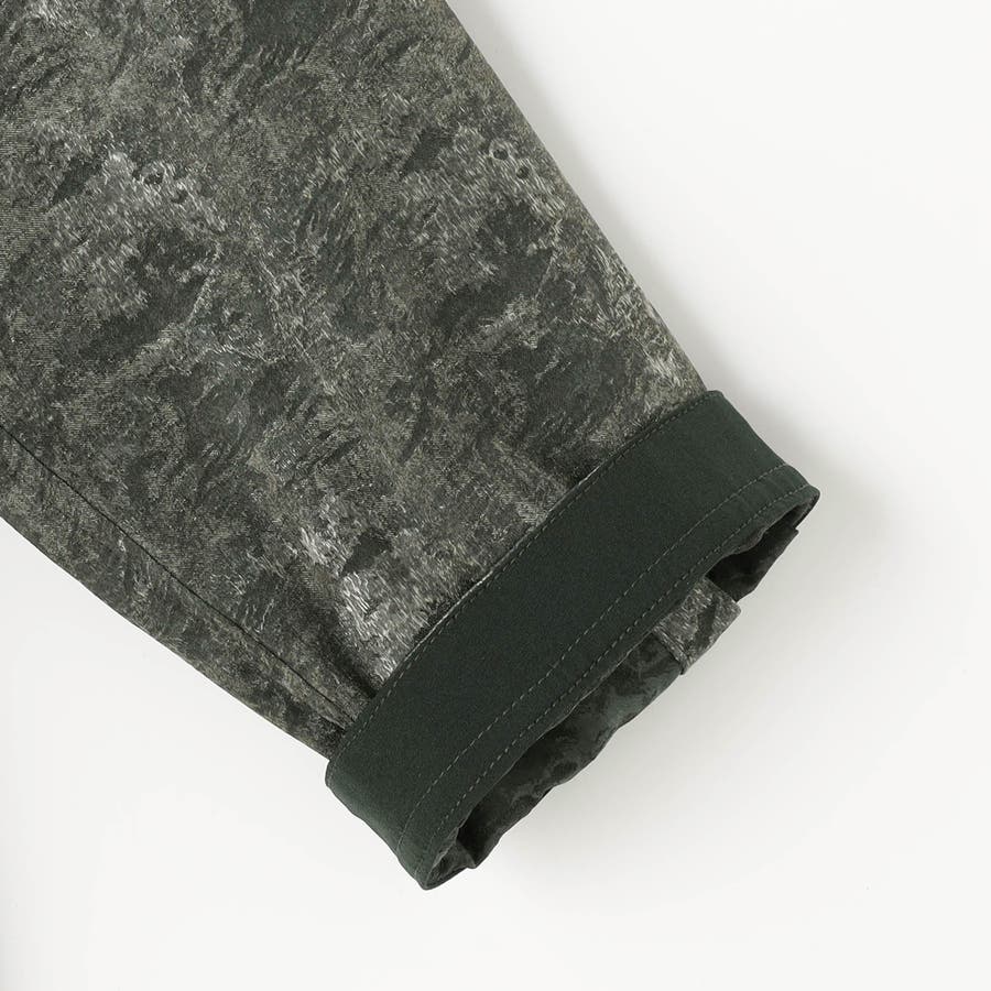 カモフラ調のブライトジャカード素材。