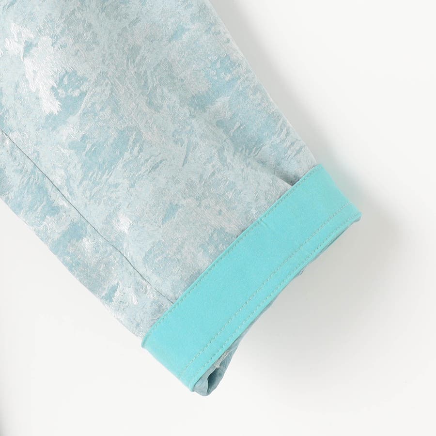 サテン生地の様なとろみのある落ち感、色気がありながらストレッチもあって着やすい雰囲気のある素材です。