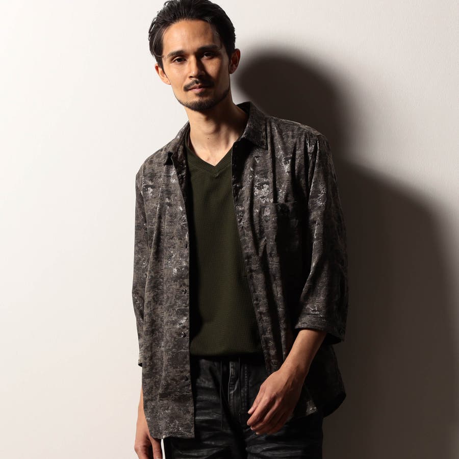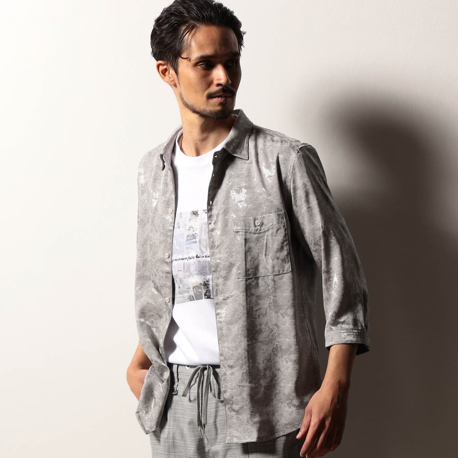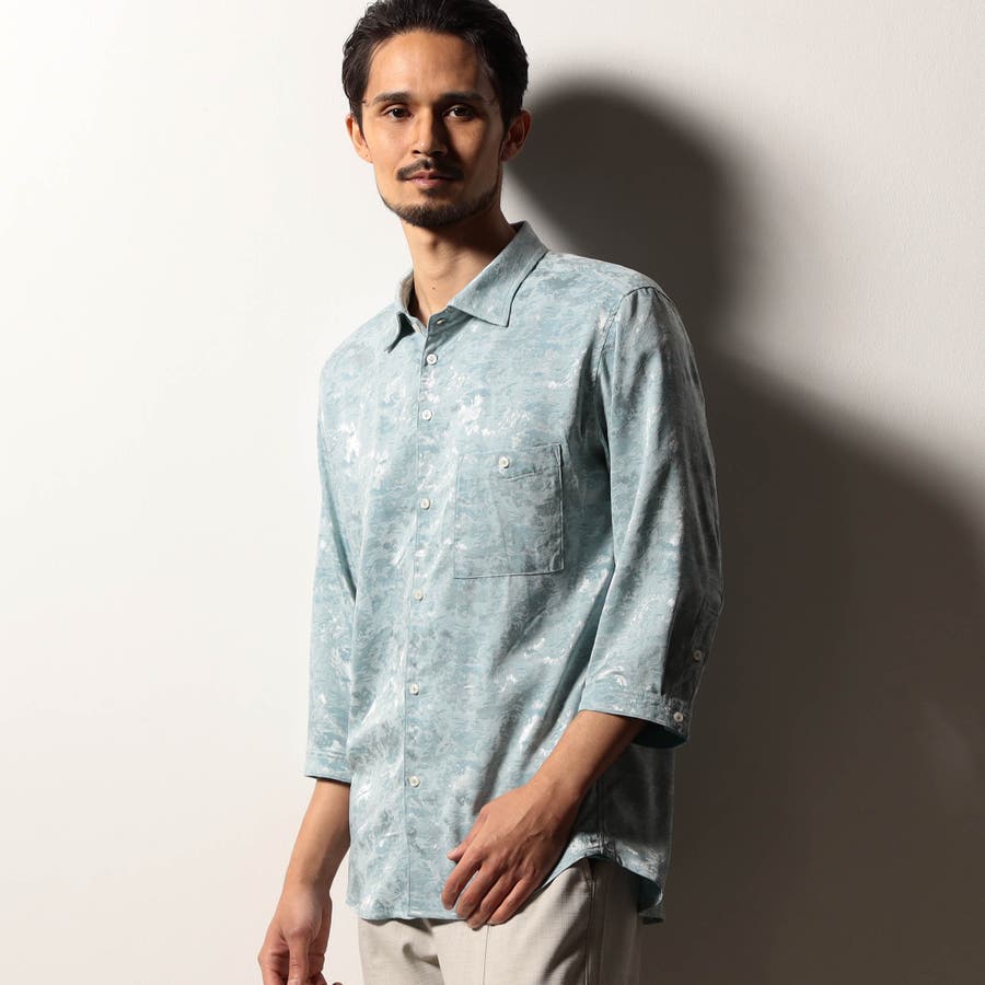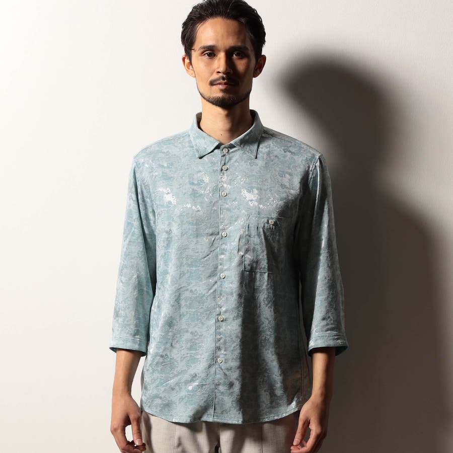 【RIELABO】ブライトジャカード 7分袖レギュラーカラーシャツ