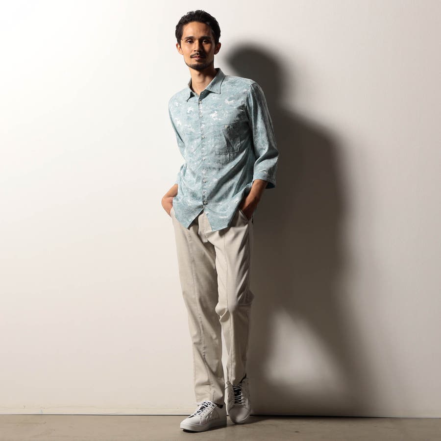 フレンチフロント仕様ですっきりさせたデザインシャツ。