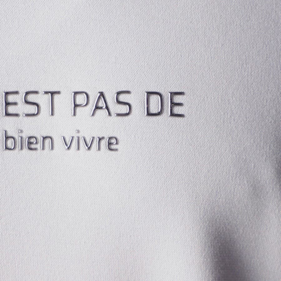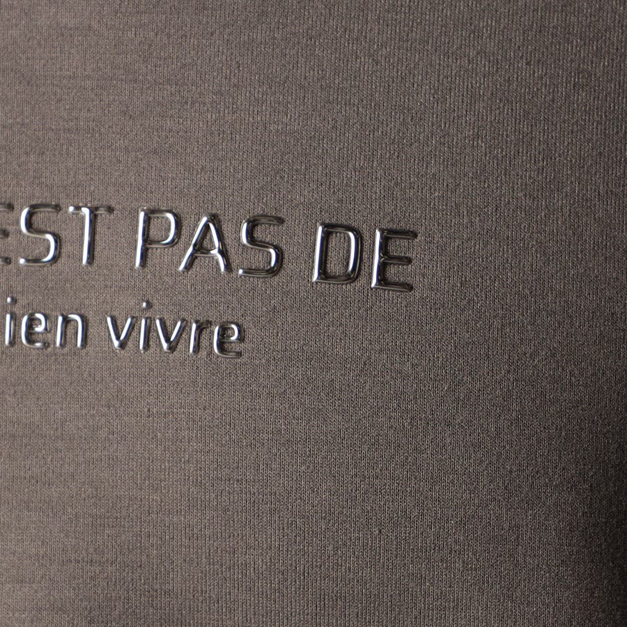 ややゆったりとしたリラックスシルエットの5分袖プルオ-バ-。胸元のメタルジェルプリントと裾、袖口端に巻き込んだロゴプリントがデザインポイントです。単品としては勿論、ブルゾンのインナ-としてもスタイリング映えする一着。シルエットや素材感によりストレス無く着用出来る着心地の良いアイテムです。更には軽さがある為、綺麗なシルエットを作り出します。