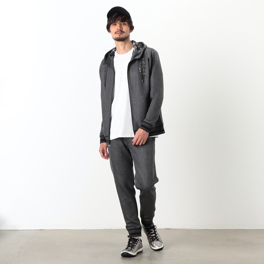 動きやすさと綺麗なシルエットを追及したシンプル且つ機能的なデザインのテックパンツ。アクセントのメタルジェル、厚盛りラバープリントでオリジナリティを高めています。裾にはリブを使用し、配色ラインでスポーティなギミックをプラス。ウエストドローコードとベルトループを備え、スポーツシーンからタウンユースまで、様々なシチュエーションで活躍するアイテムです。