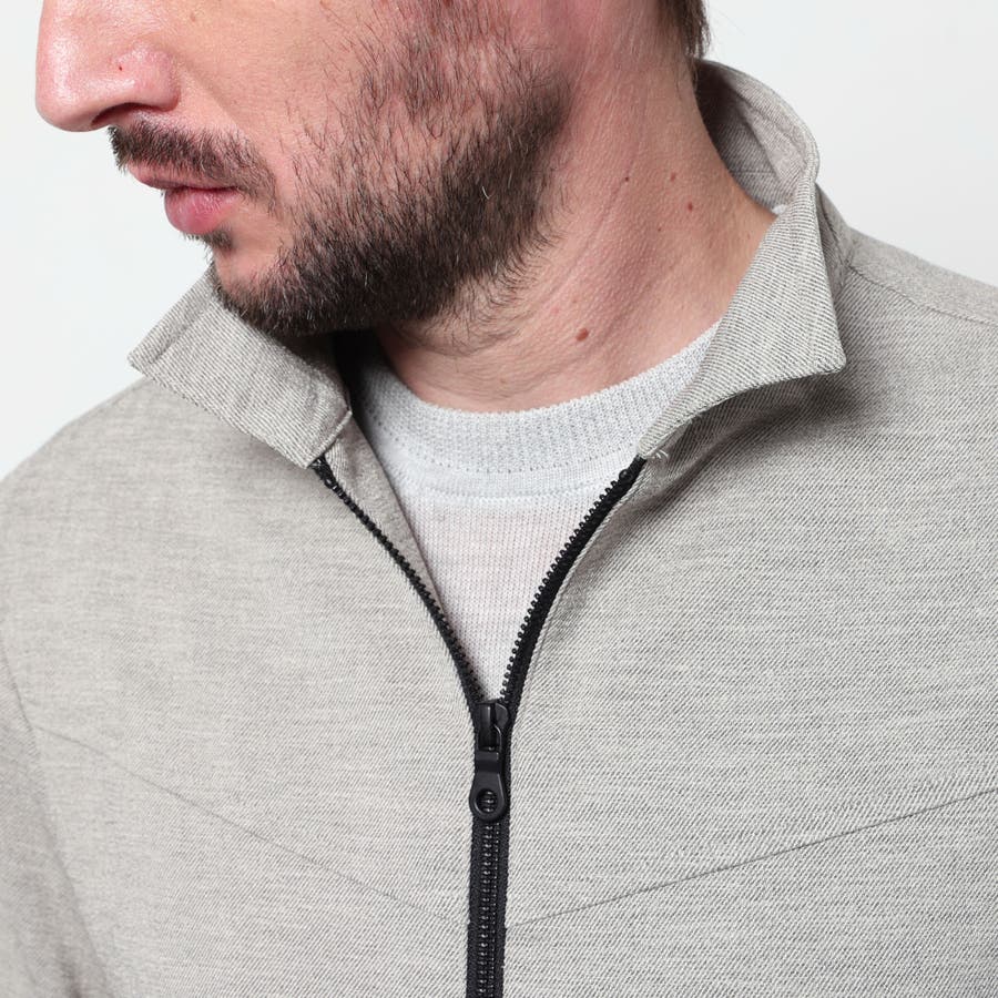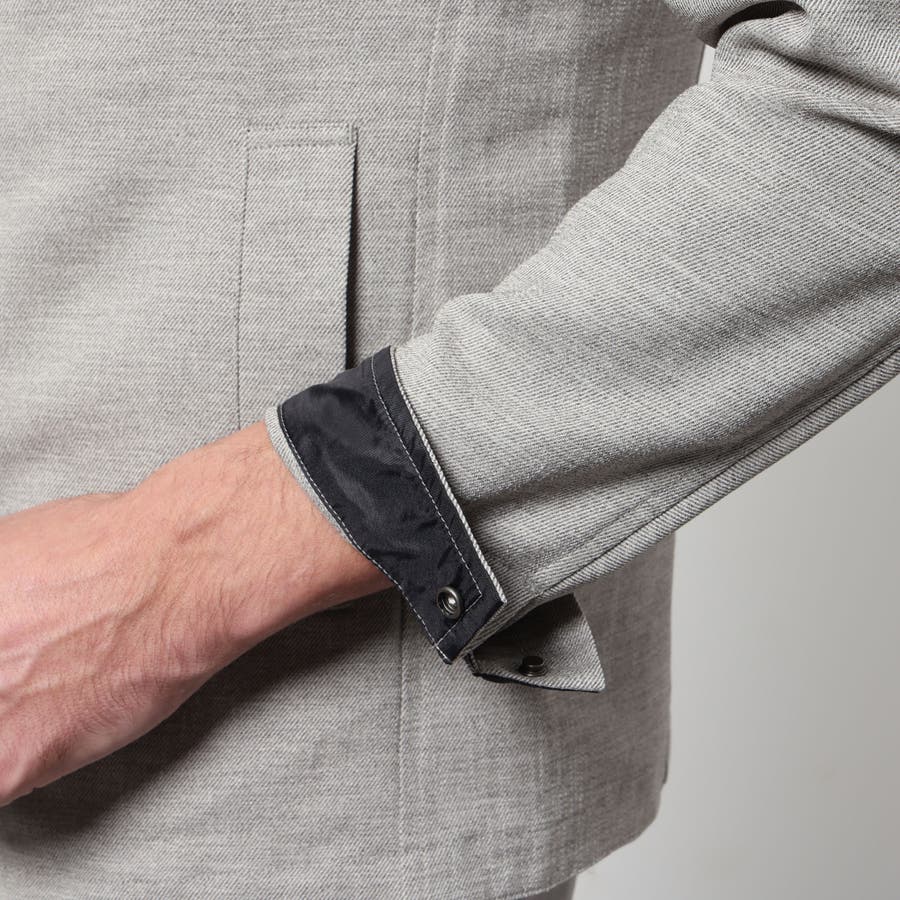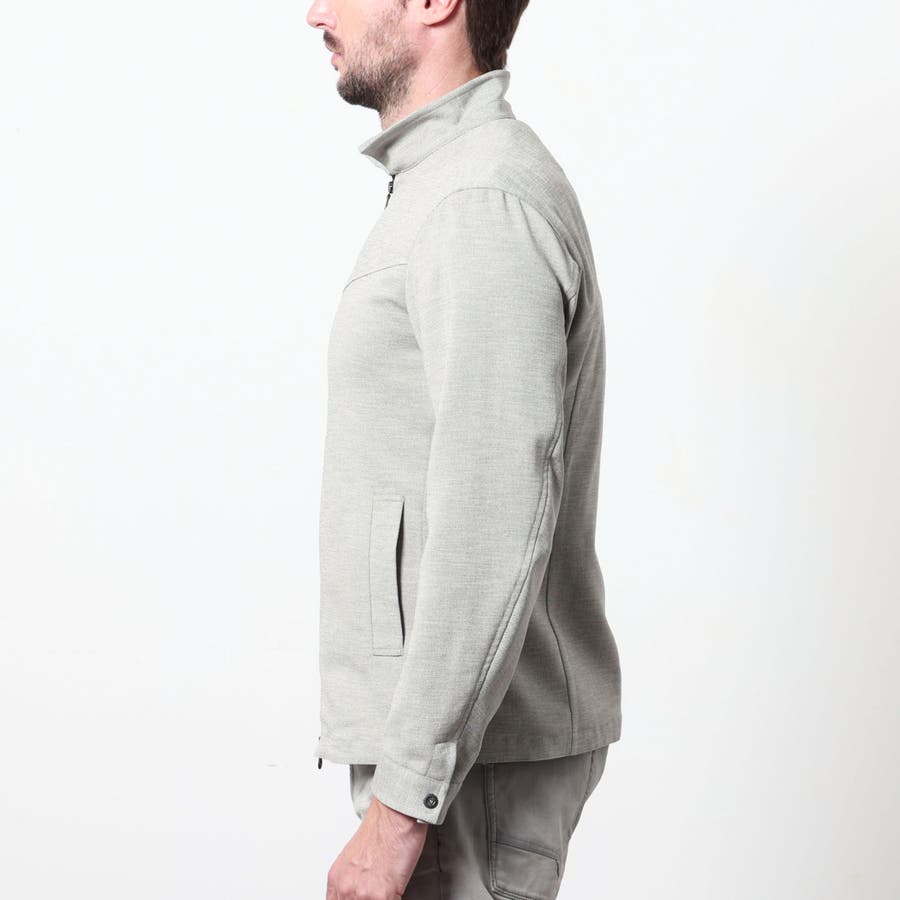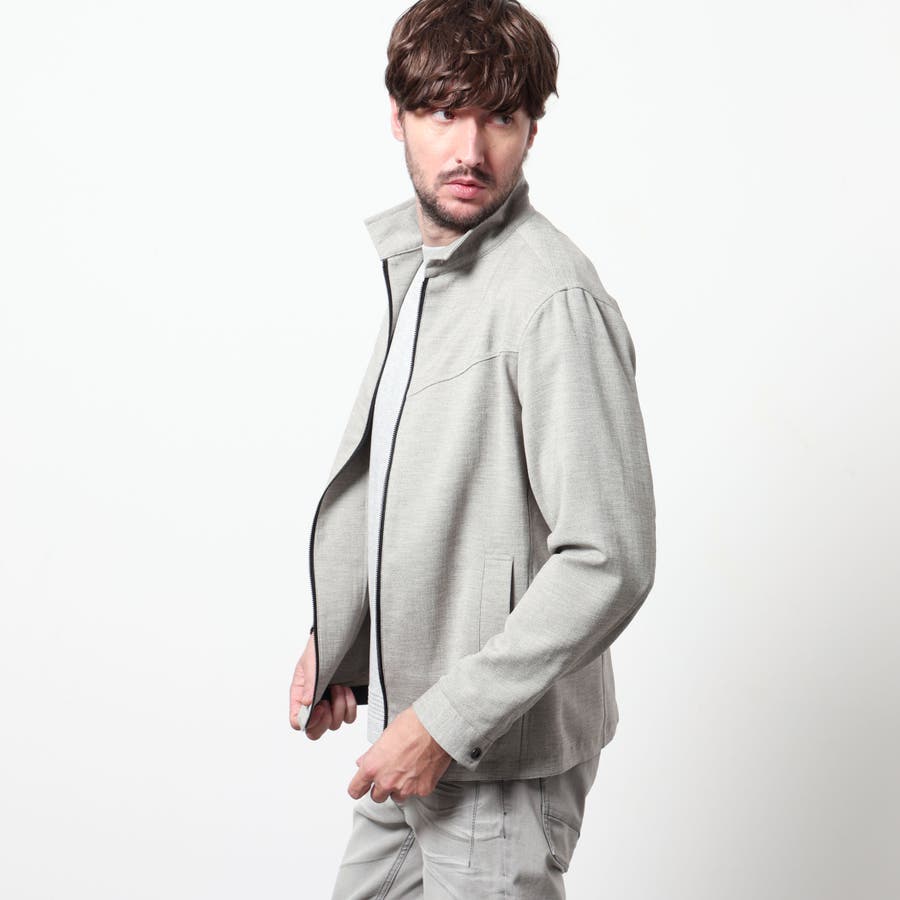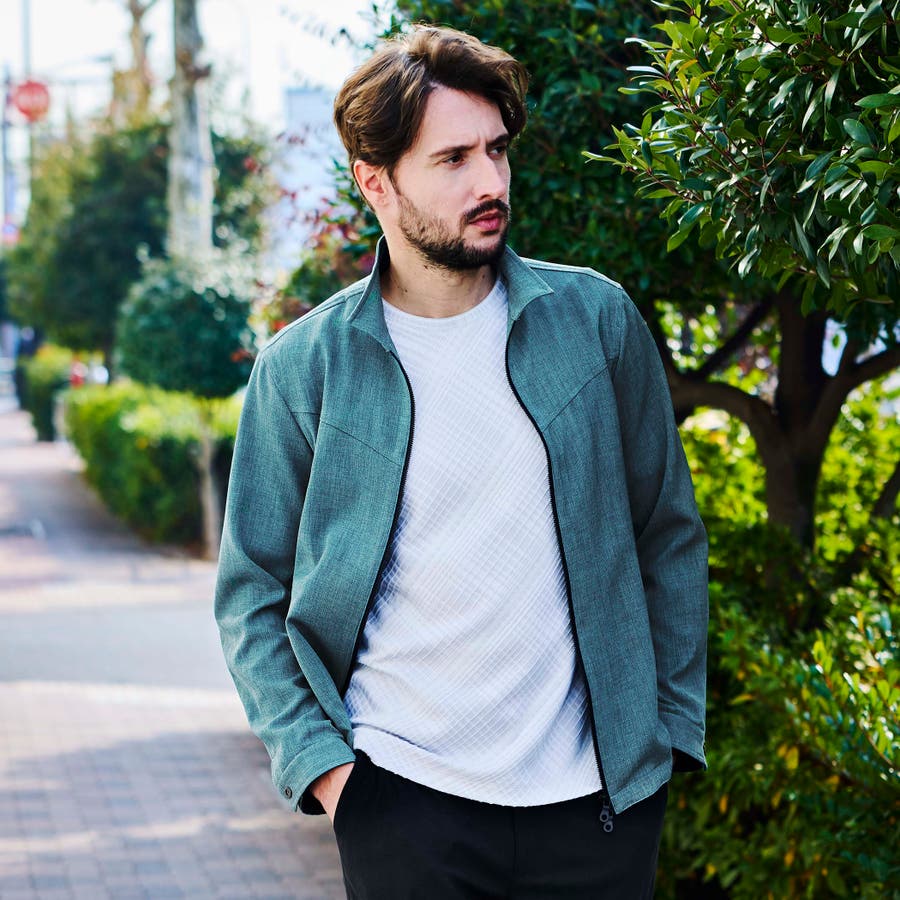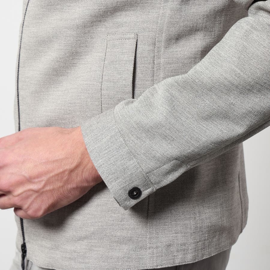 軽量な麻調のポリエステル素材を使用したスイングトップ風ブルゾン。