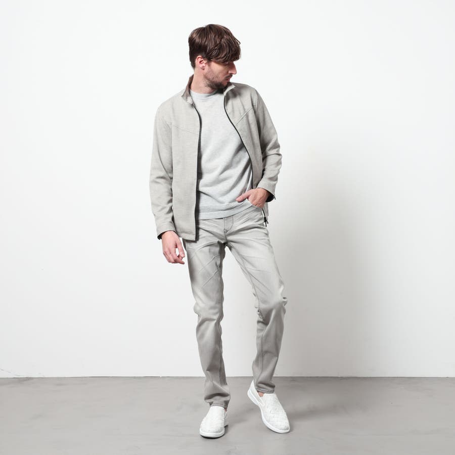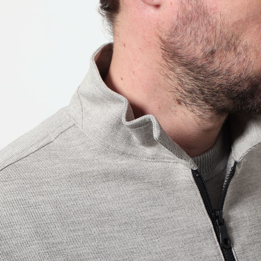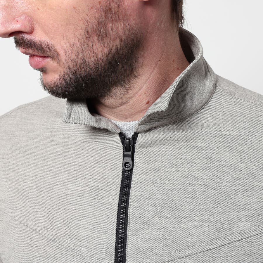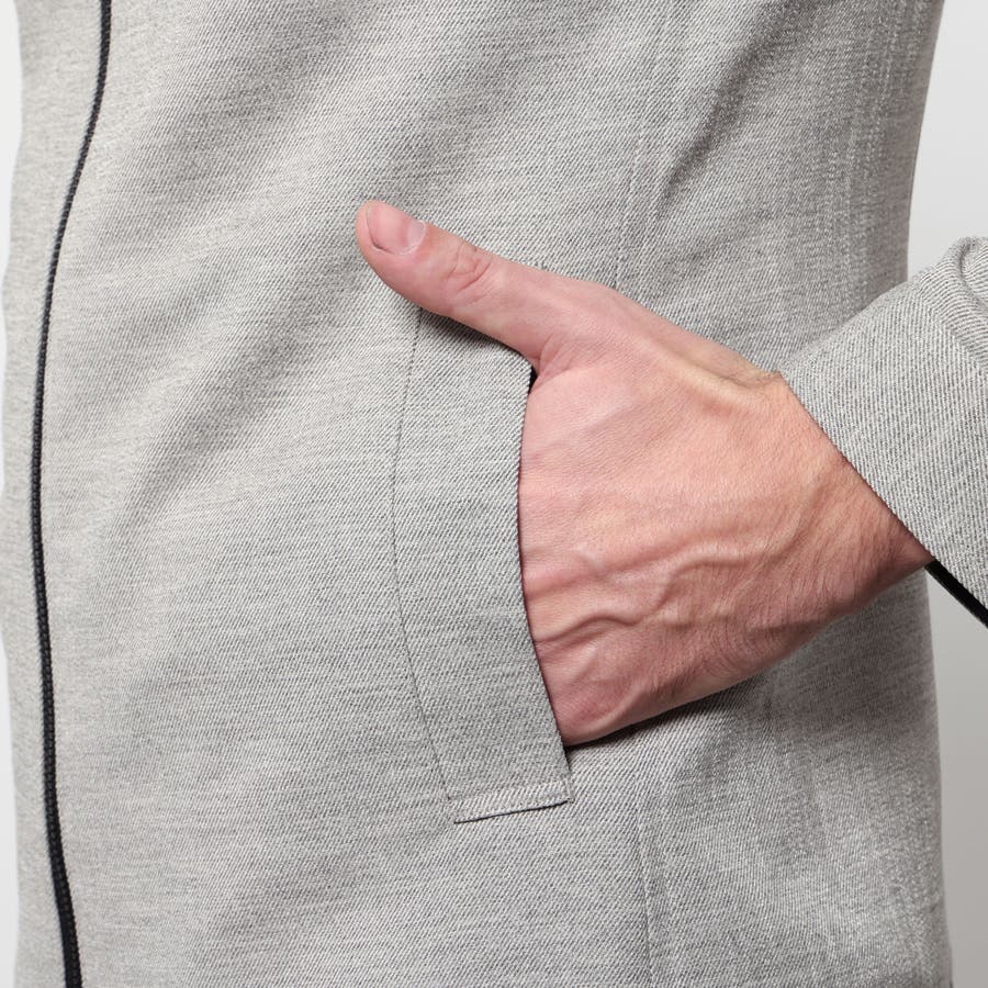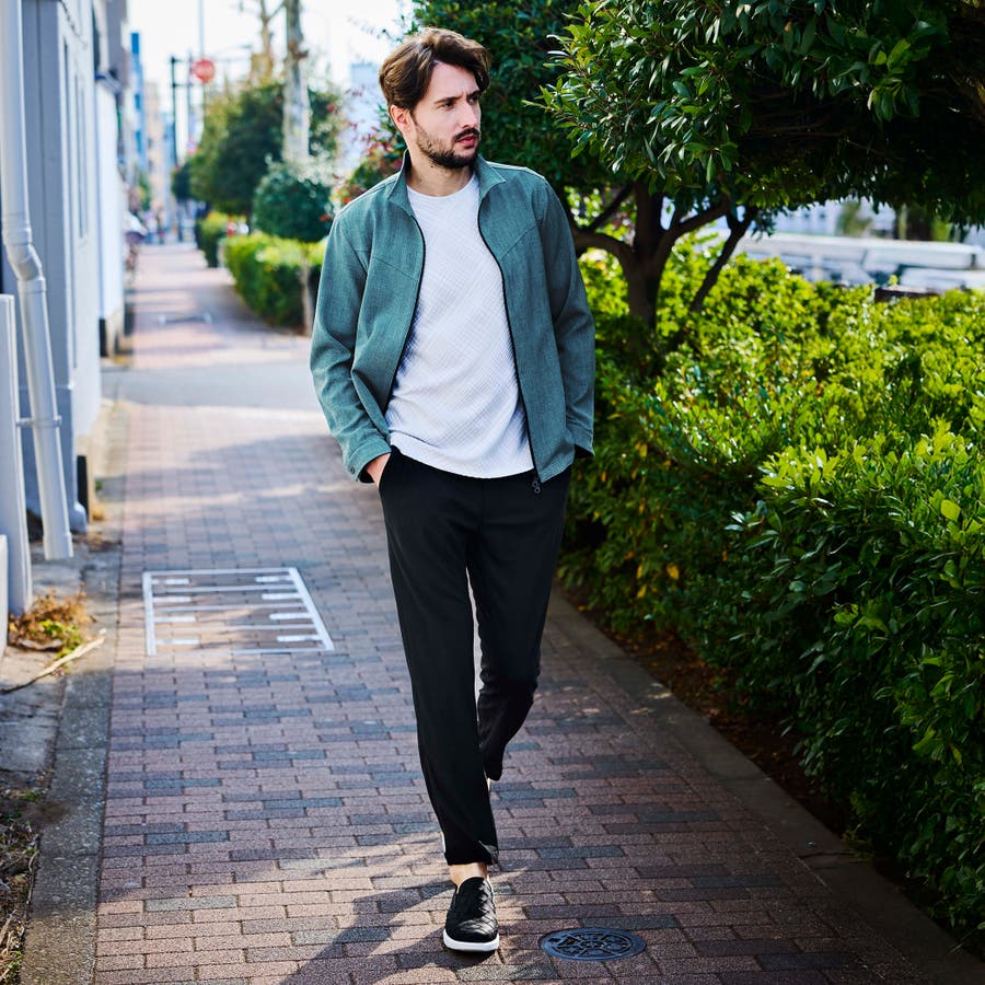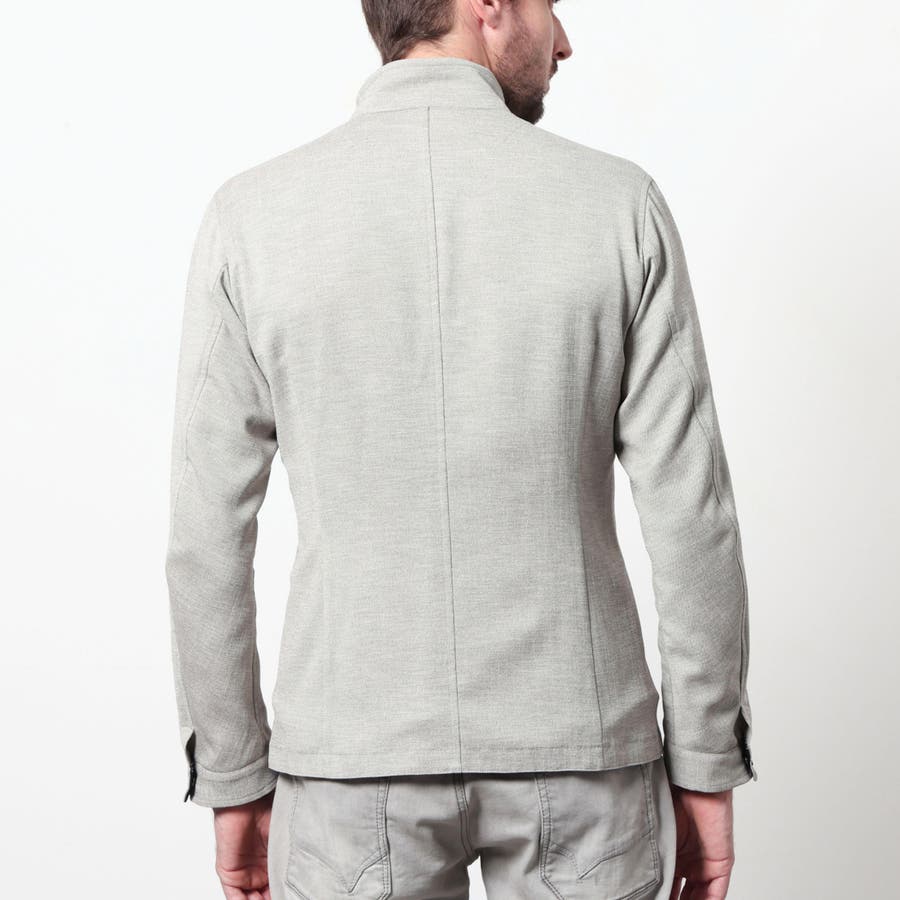 軽量な麻調のポリエステル素材を使用したスイングトップ風ブルゾン。