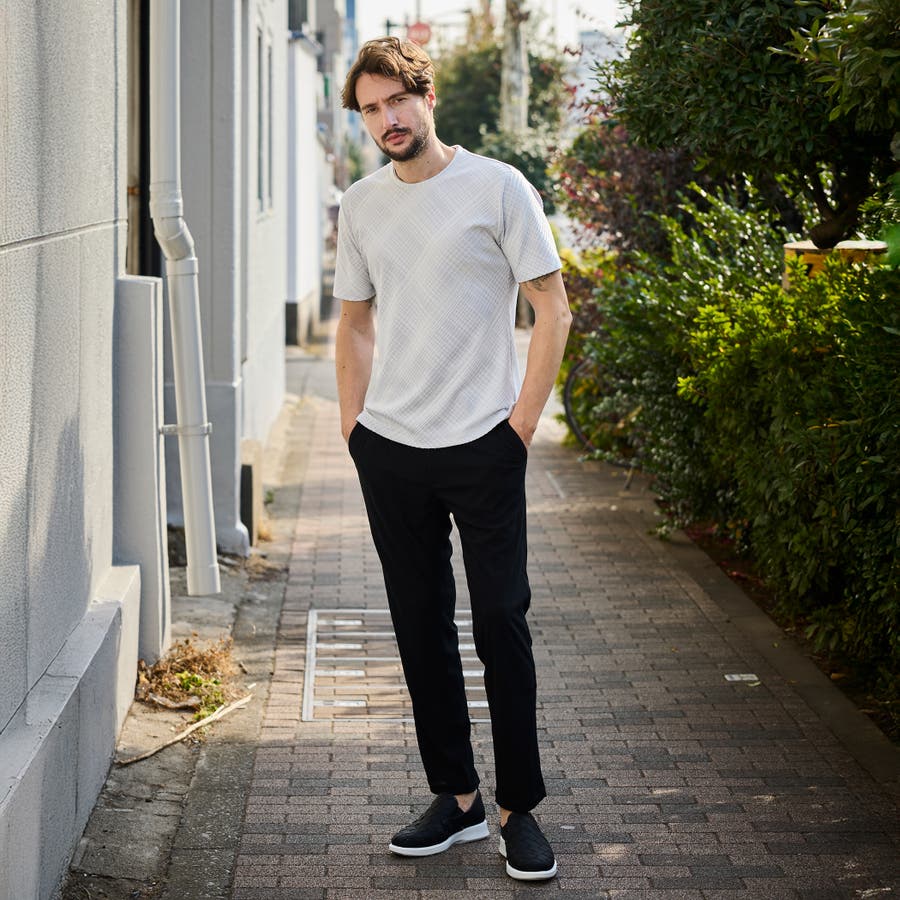 イージーパンツ仕様のスラックスデザイン。