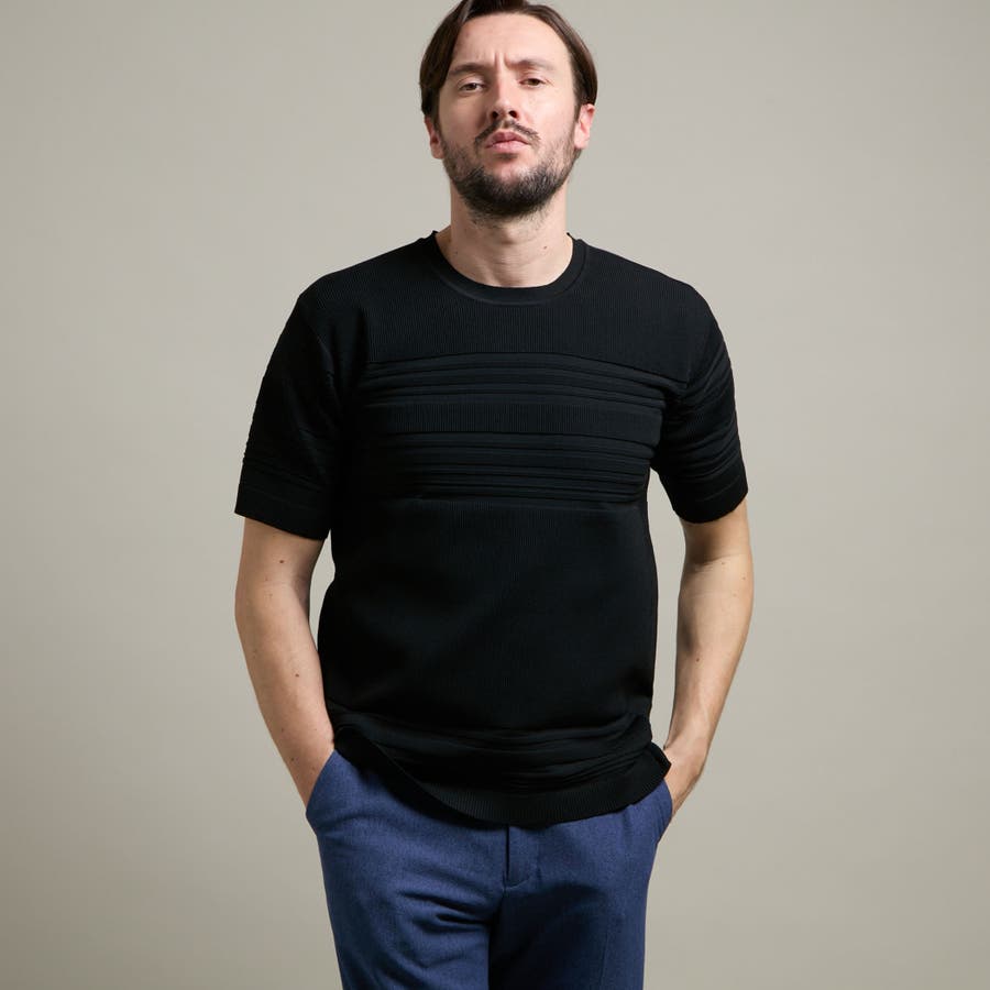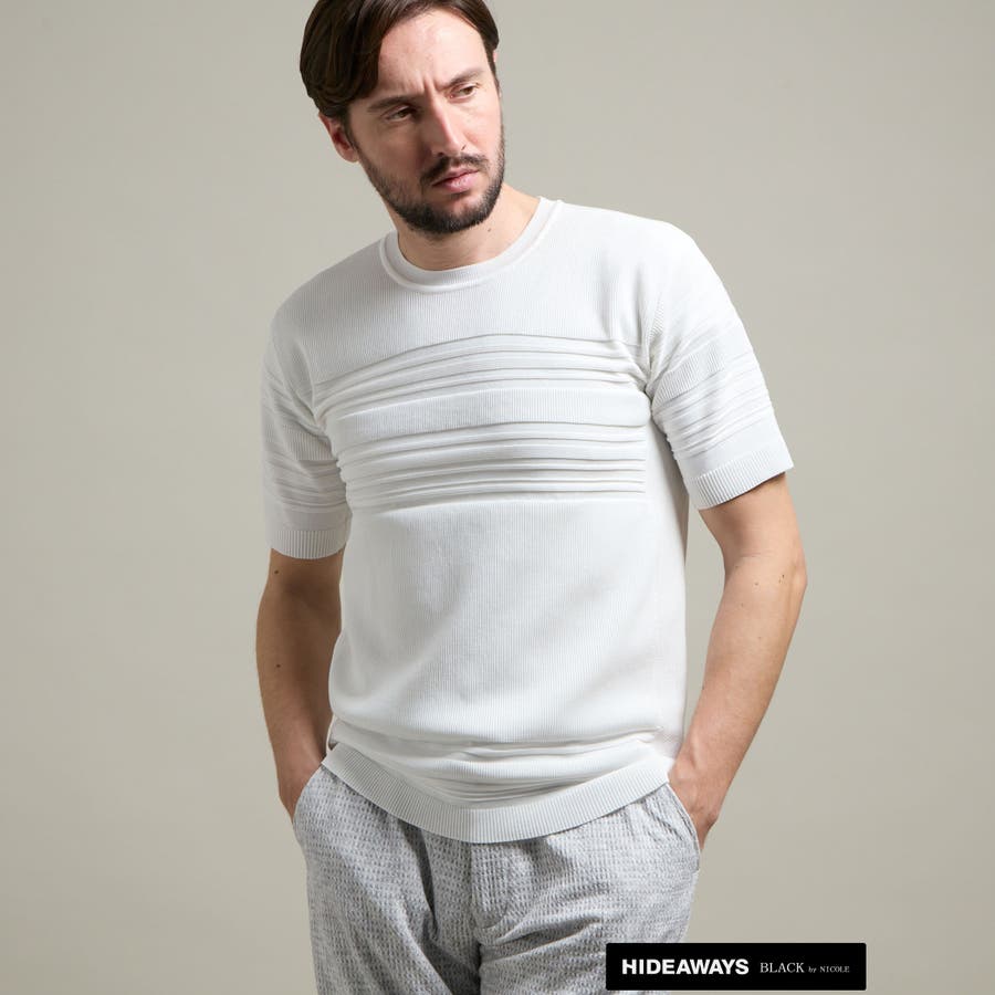 【HIDEAWAYS BLACK】切り替えタックボーダー半袖ニット