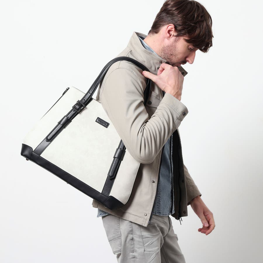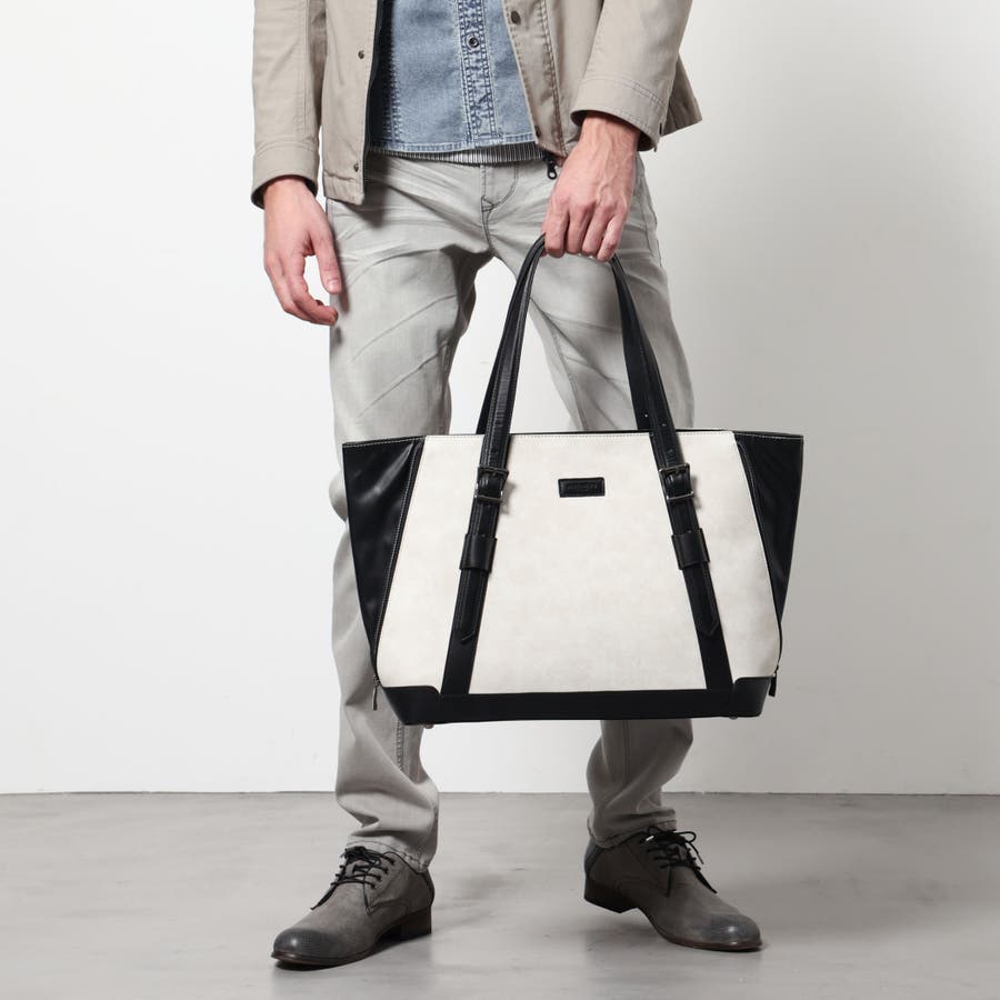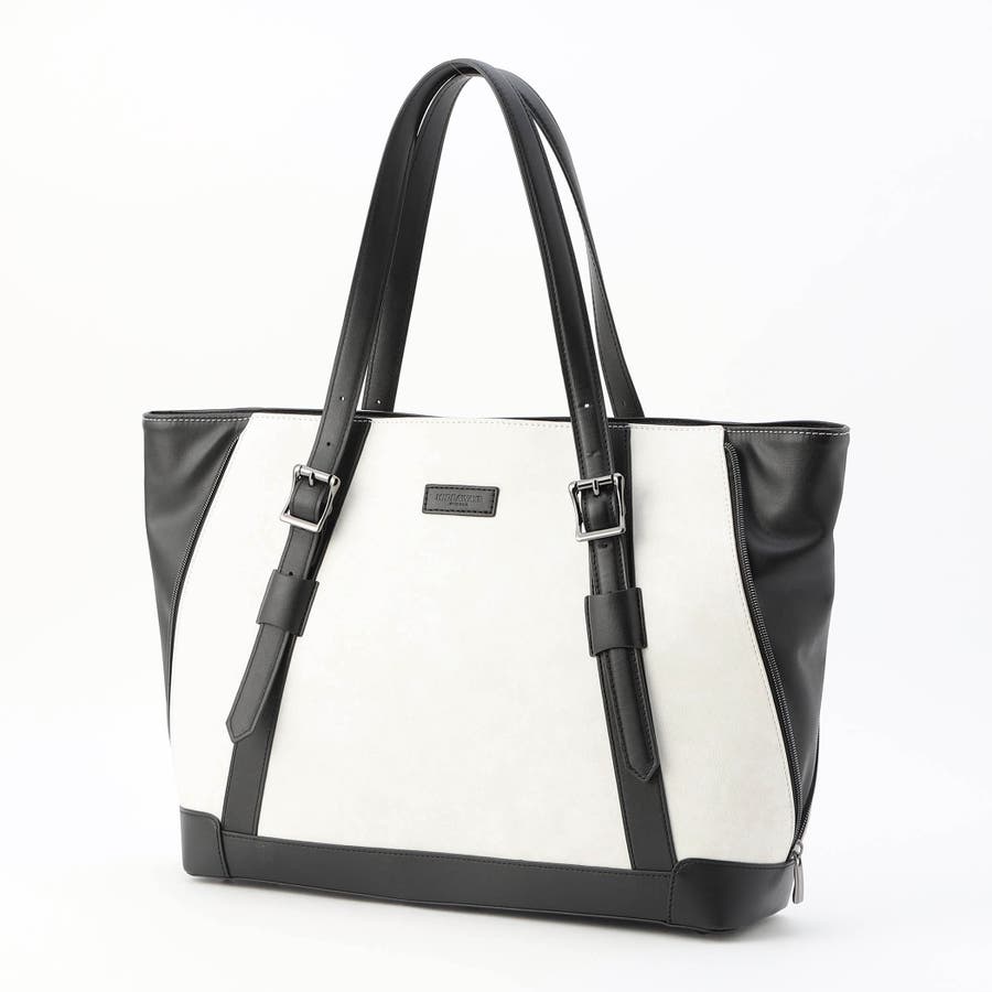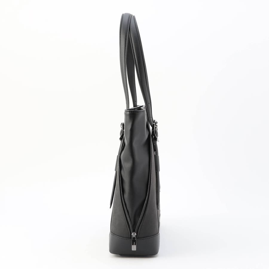 サイドにファスナーデザインをあしらったトートバッグ。