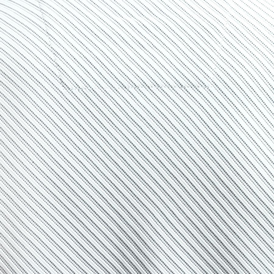 ピッチ変化のあるタック編みの凹凸と質感の違う2種類のポリエステル糸でボーダーを表現しました。