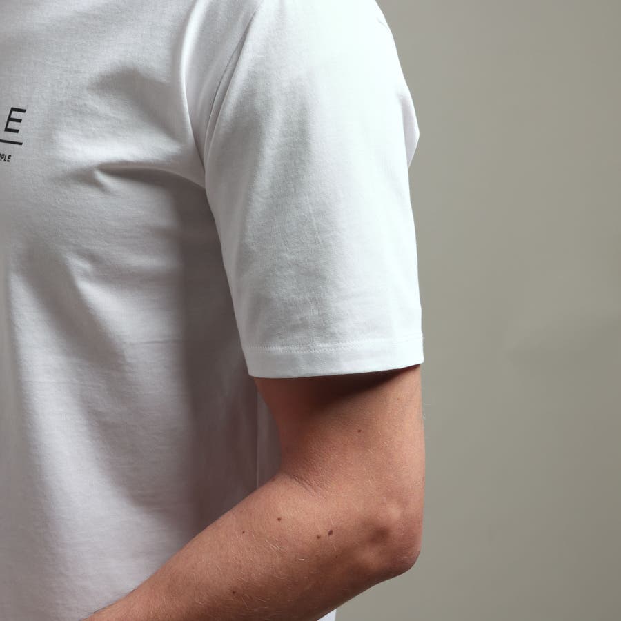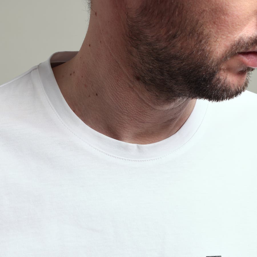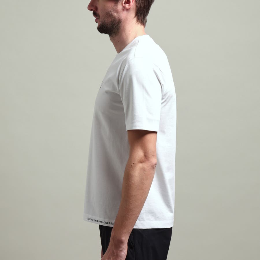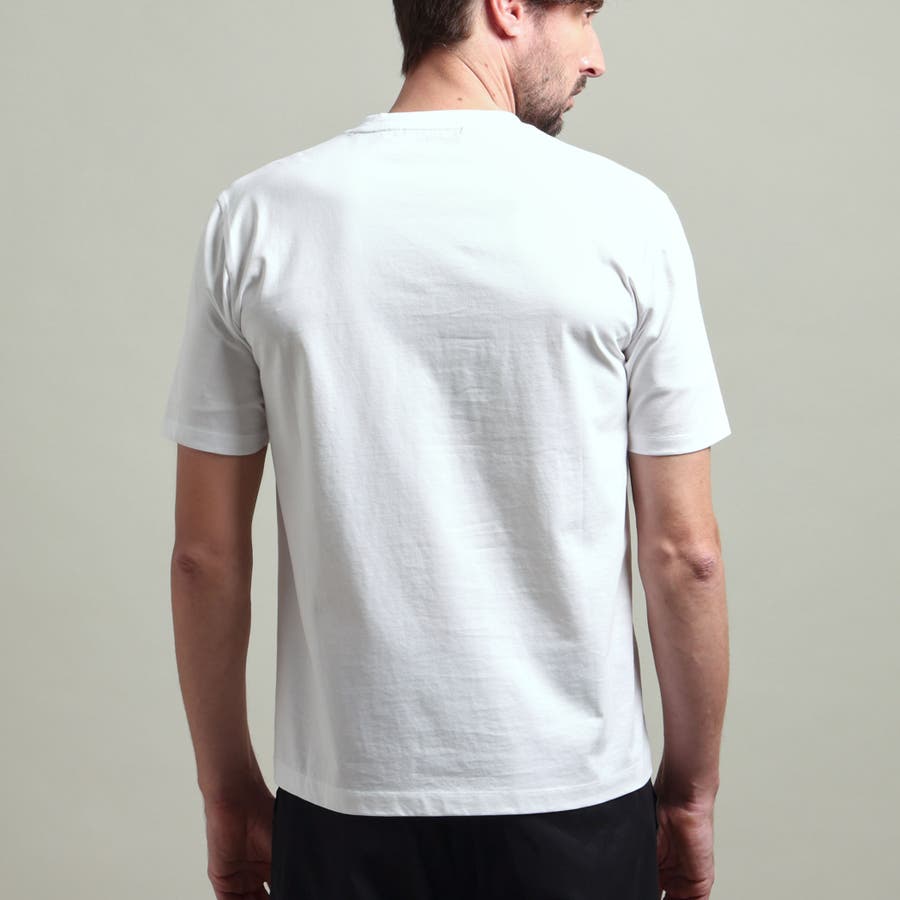 前身頃胸と前身頃左裾にロゴプリントを施した、スッキリと見える上品なVネックTシャツに仕上げています。