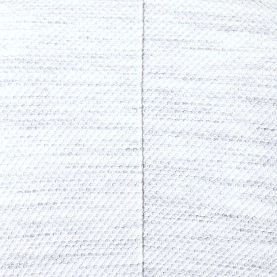 ポリエステルと綿糸の不規則な引き揃えと片染めにより、独特なメランジ感を表現したハニカムジャカ-ド生地になります。