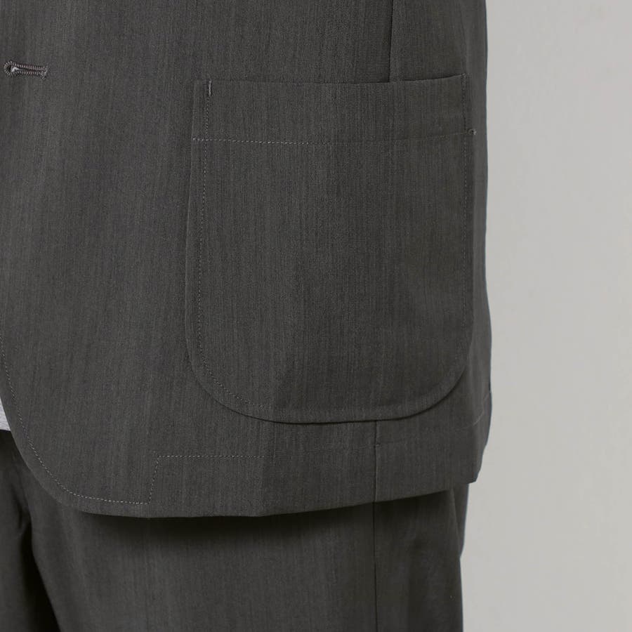 ウエストの絞りを抑えたトラッドテイストの2つ釦デザインに、パッチポケットを採用。