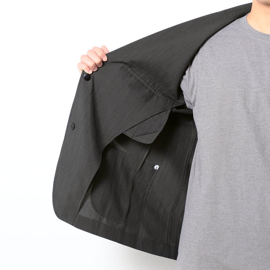 ビジネスシーンでも使いやすいよう、着丈は短すぎないバランスに仕上げています。