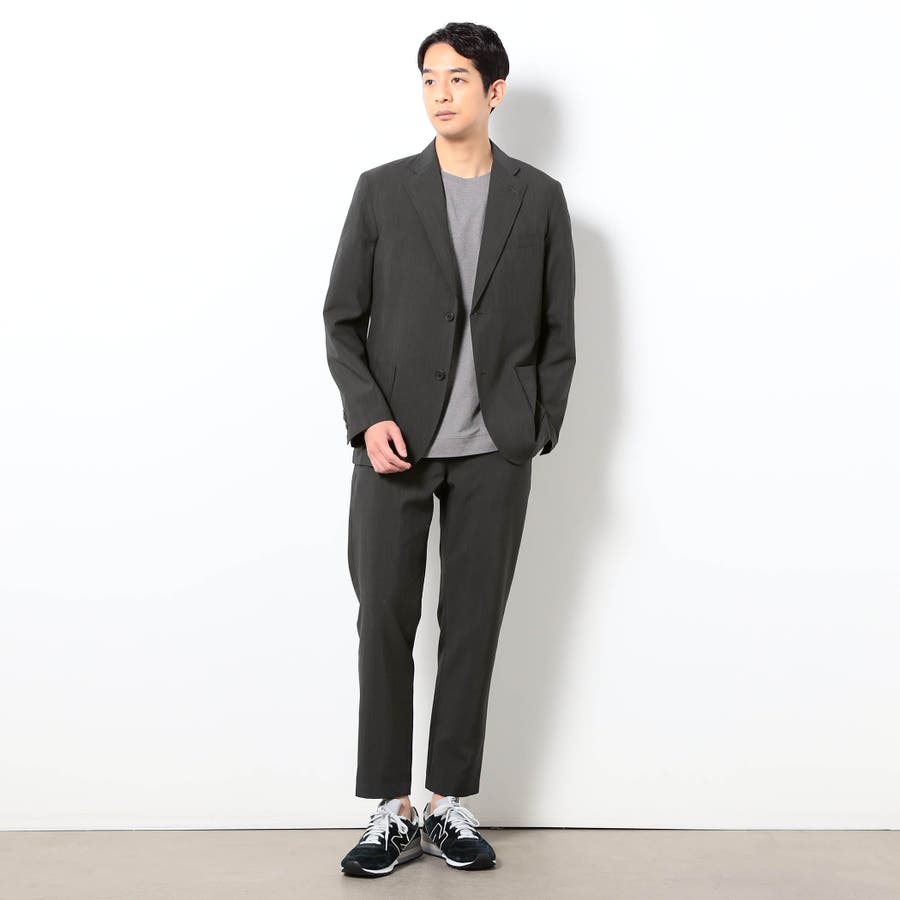 同素材のパンツと合わせたセットアップスタイルもおすすめです。