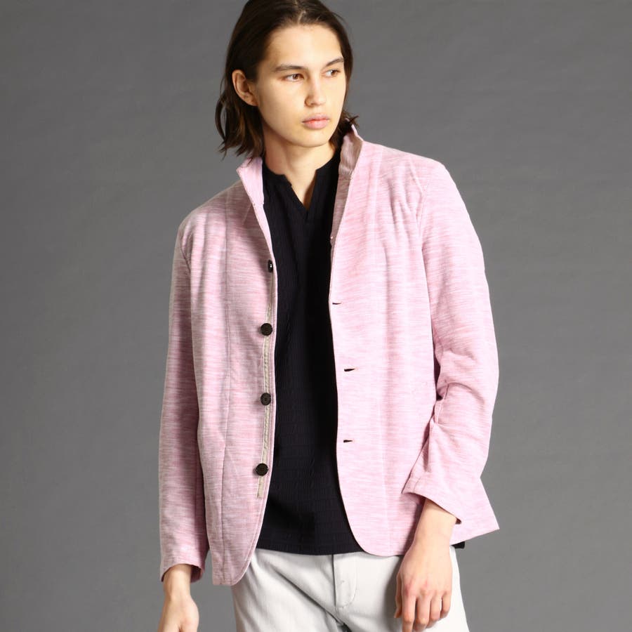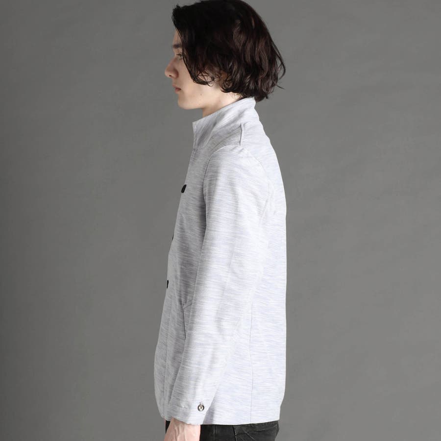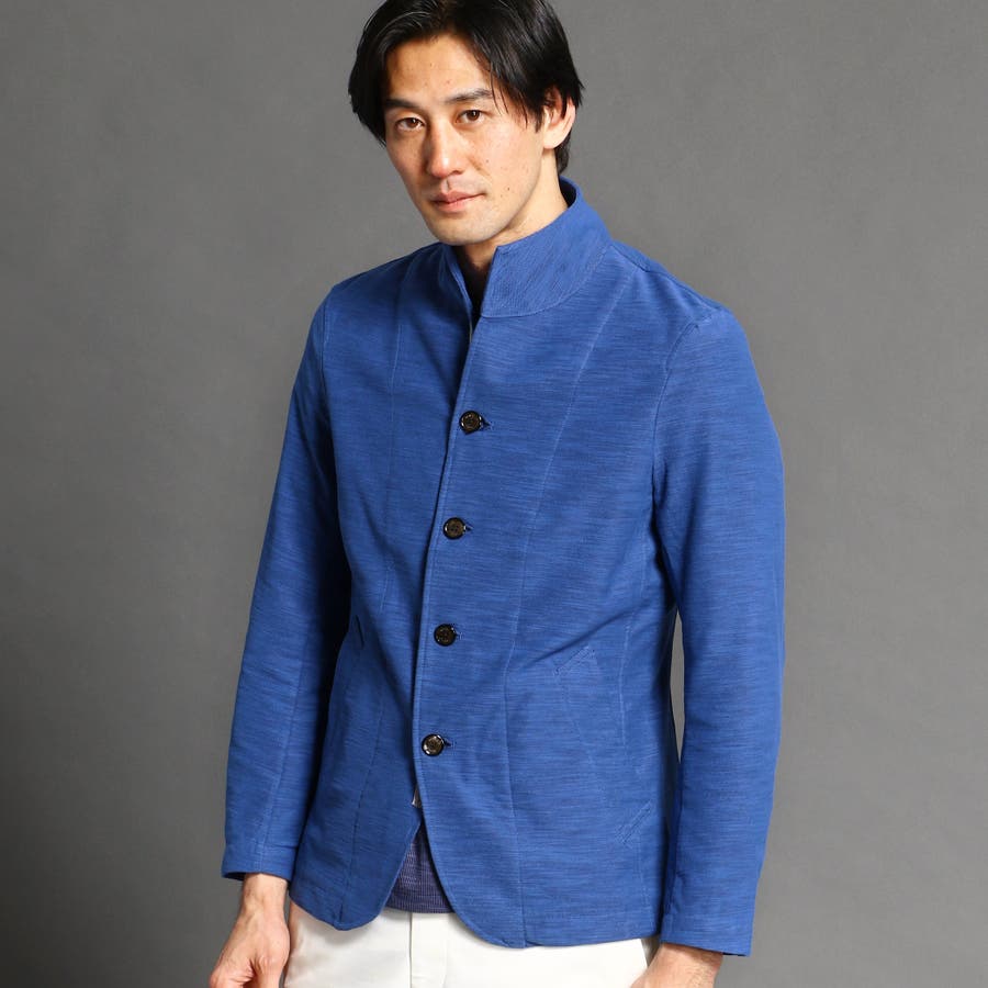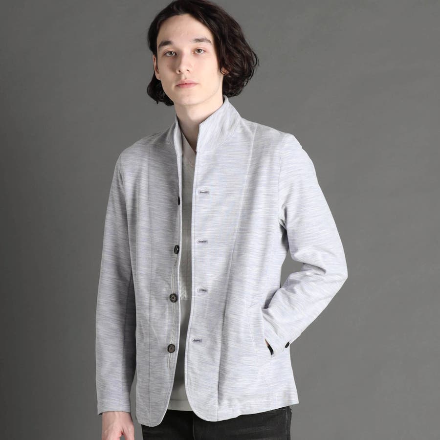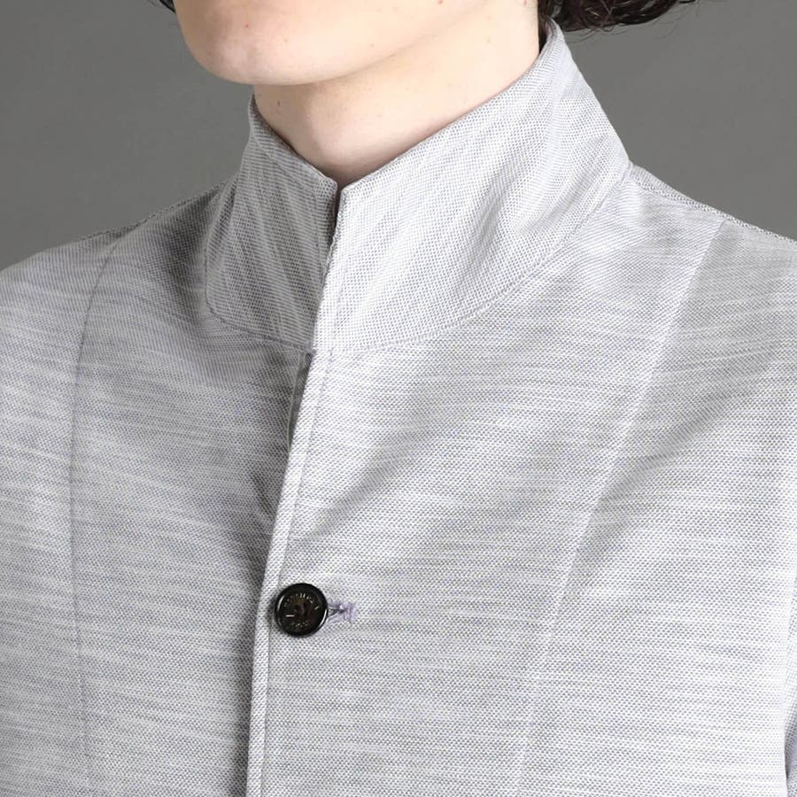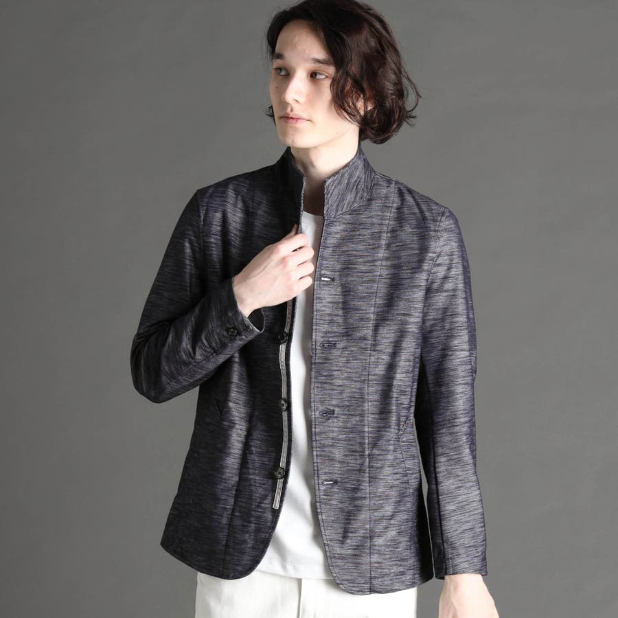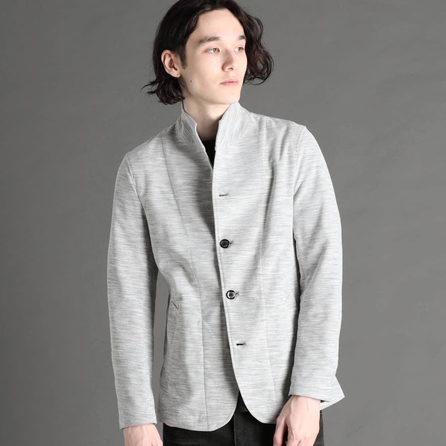 ワイヤーで襟元を自在にアレンジできるスタンドカラージャケット。