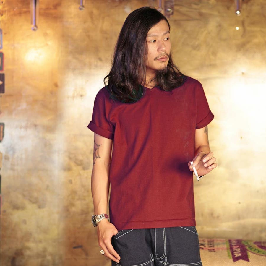 100%コットンをファブリックに使用した、スタンダードVネックTシャツ。リブ幅や袖口、裾のステッチの縫いや脇あて等、細かいディテールがビンテージアメリカンワークを彷彿とさせる。首が伸びにくい仕様になっており、背中や脇の汗どめ等、普遍的だが随所にこだわりを感じる他にはない一枚。一度着ると病みつきになり、リピーター続出。ほぼ毎日着てしまうほど大活躍します。