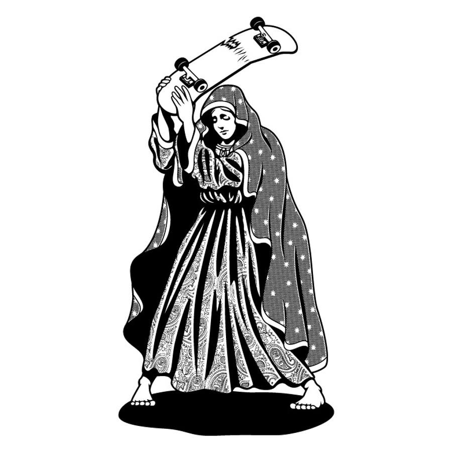 ボディーが新しくなりました!6.0ozのオープンエンド糸を使用した生地はアメリカンテイストたっぷりのザックリとした素材感が特徴のTシャツです。 スケートデッキを叩き割るマリア。フィギュア界で有名なMAVER氏によるグラフィック。
