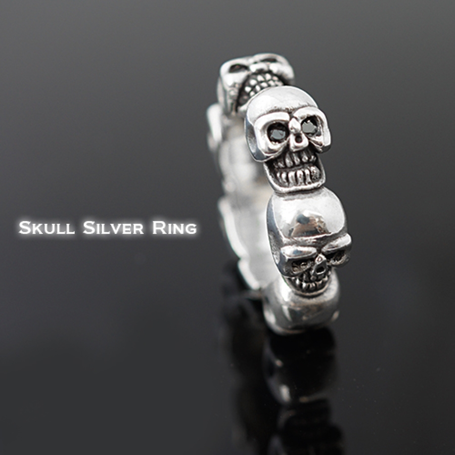 ROCKな定番アイテム スカルヘッドが一周したリング 抜群の存在感と重量感