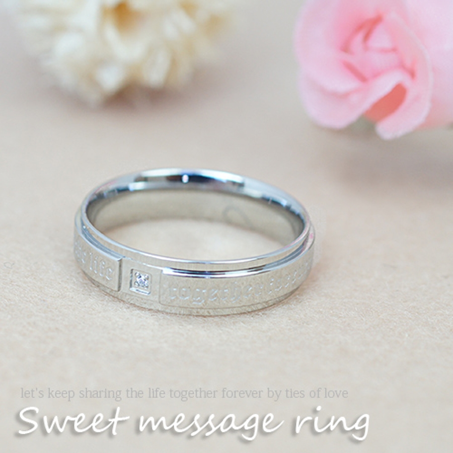 メッセージが刻印されたリング サージカルステンレス 一粒キュービックジルコニア