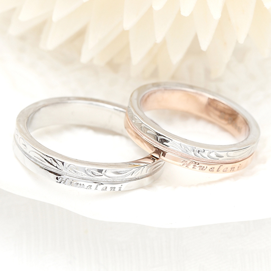 美しい彫柄を施したステンレス製のハワイアンジュエリーのペアリングです。