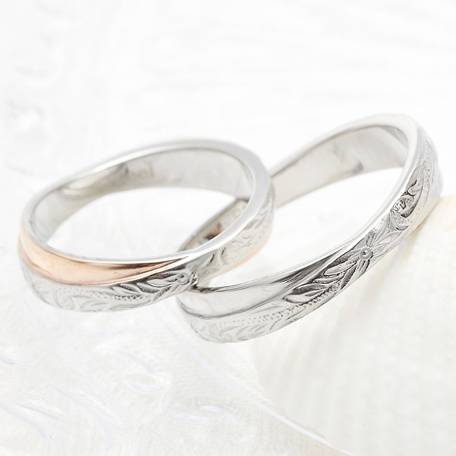 美しい彫柄を施したステンレス製のハワイアンジュエリーのペアリングです。