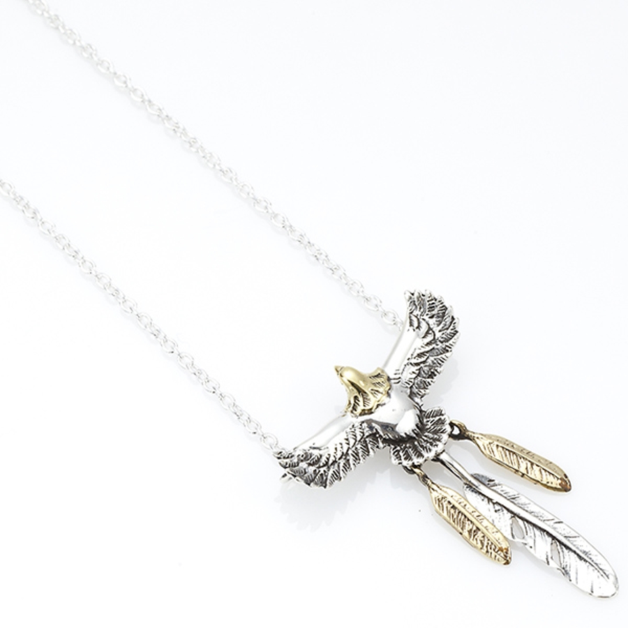 翼を広げたイーグルに3枚のフェザーをフリンジさせたデザインのネックレス。