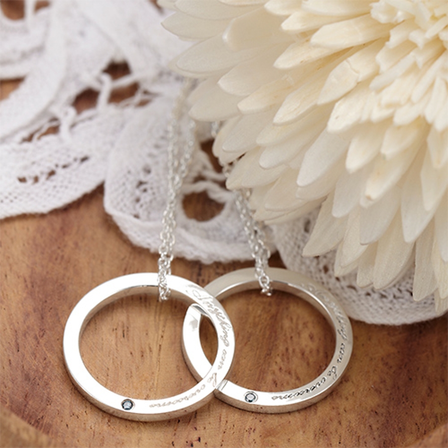 『Anything can beovercome/どんなことも越えていける』と刻まれたメッセージリングのペンダント・ネックレスです。