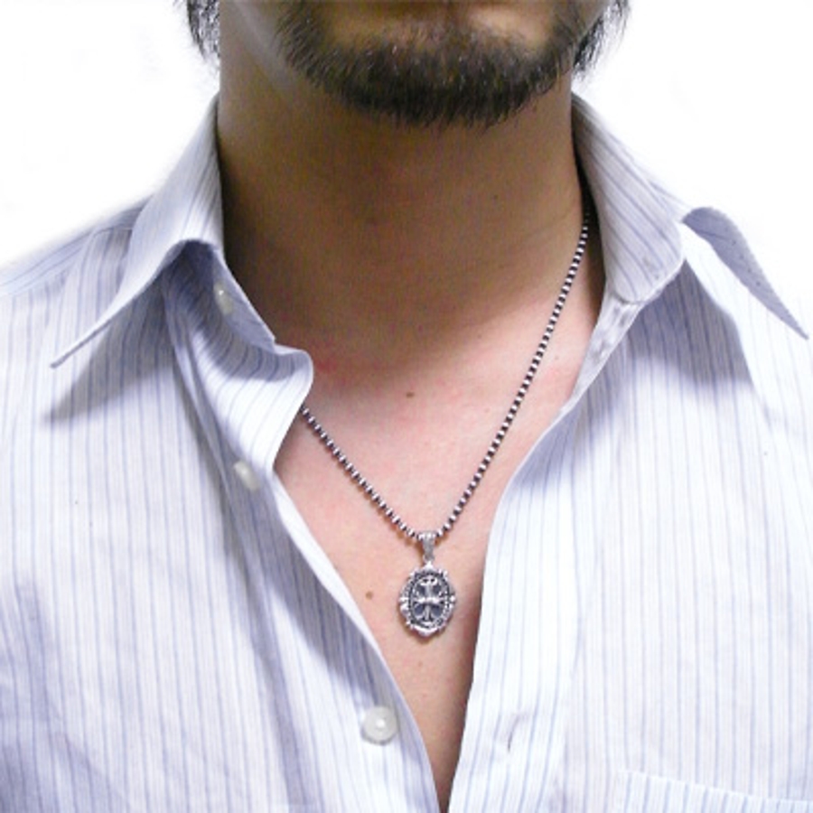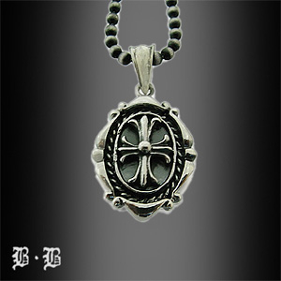 定番モチーフのクロスをイブシ仕上げのペンダントに。