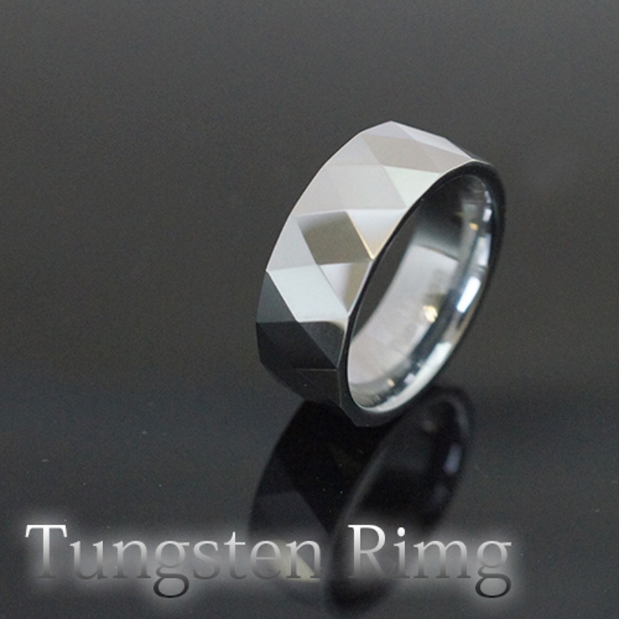 タングステンを使用したひし形カットのリング オーソドックスなシルバーカラー