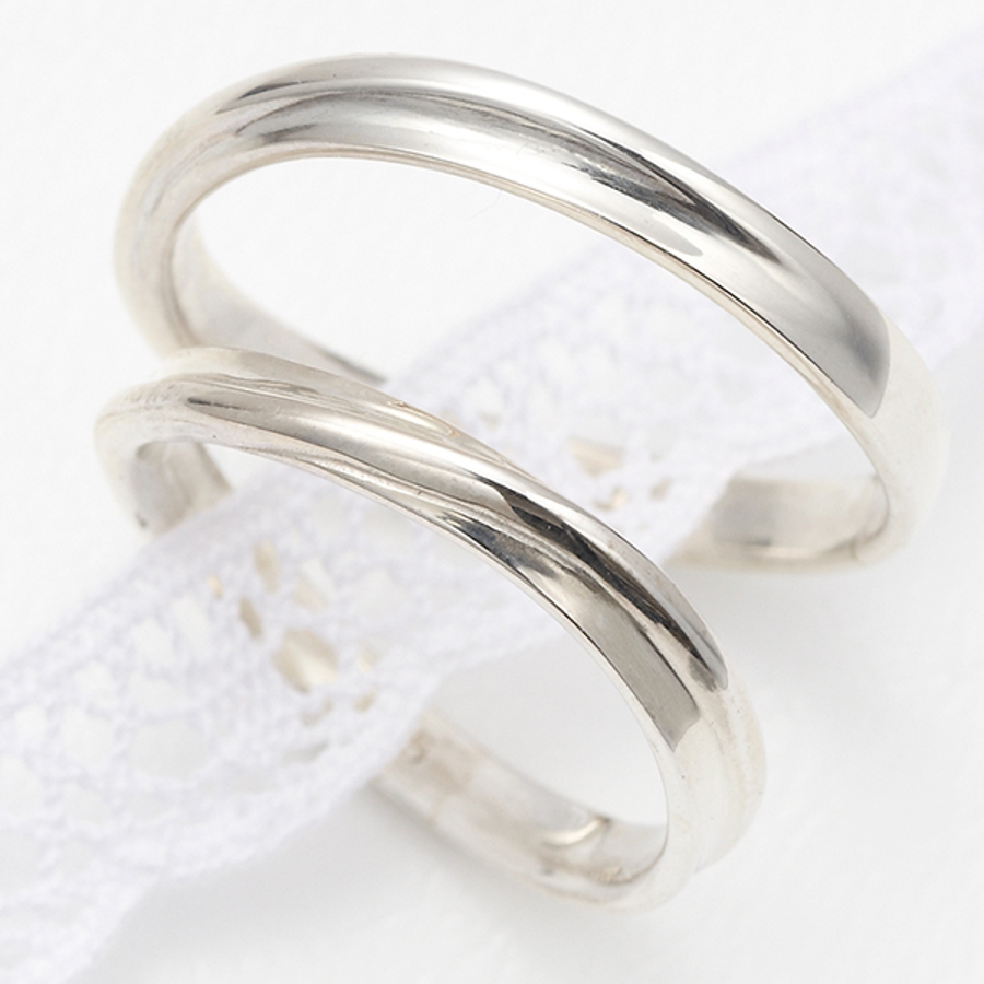 艶めくシルバー製の柔らかいカーブのラインおを施したリング。