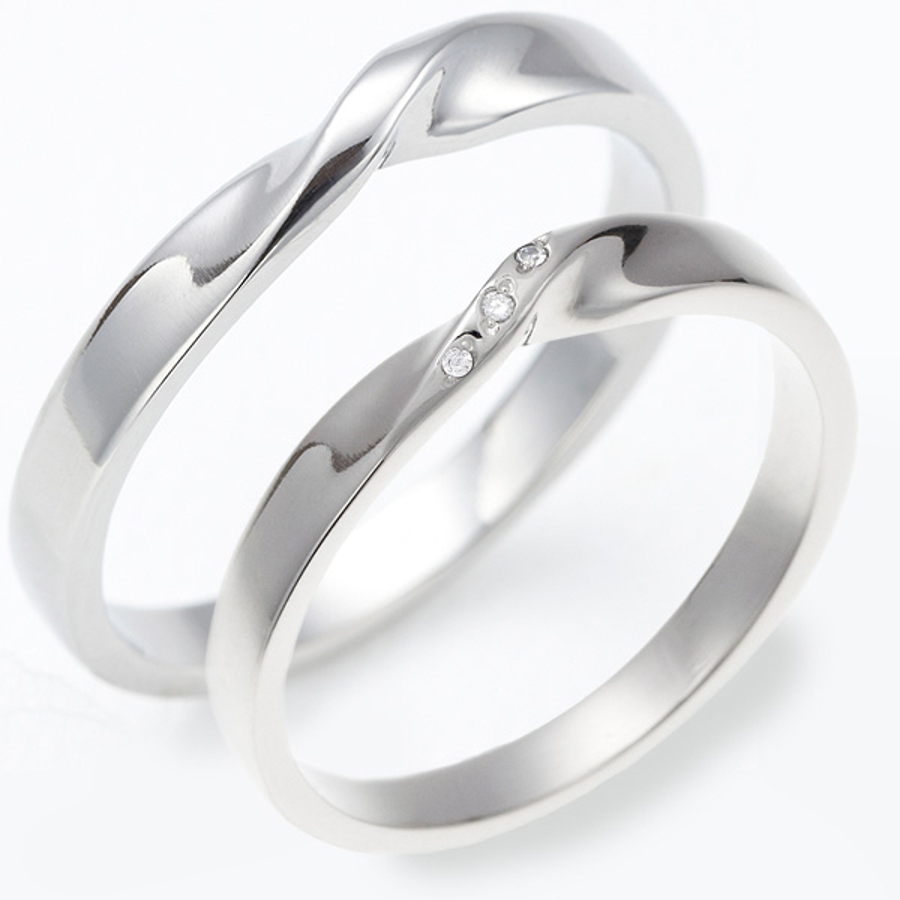 レディースは、ねじりラインにキュービックジルコニアを3粒並べ、