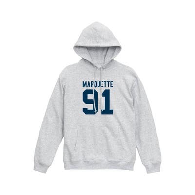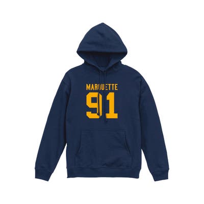 都市名の【MARQUETTE】ロゴとナンバリングをプリントした、
