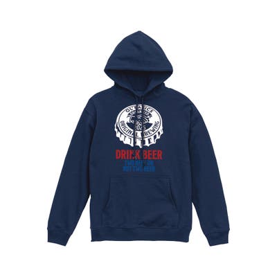 ・ビール瓶の蓋とロゴをプリントしたスエットパーカー