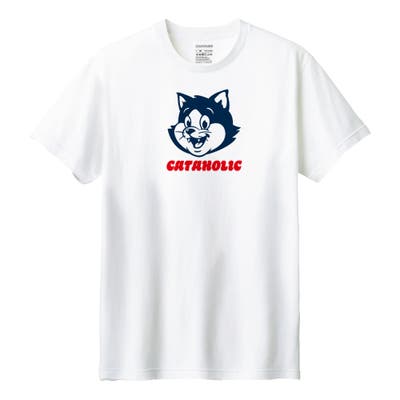 ・ポップで可愛らしい猫のイラストと「猫中毒」のロゴプリント