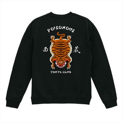 チベタンタイガー バックプリント 裏パイル スウェットシャツ。