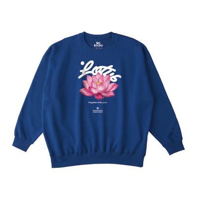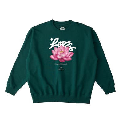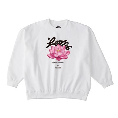 ・蓮の花が映えるオーバーサイズのスエットトレーナー