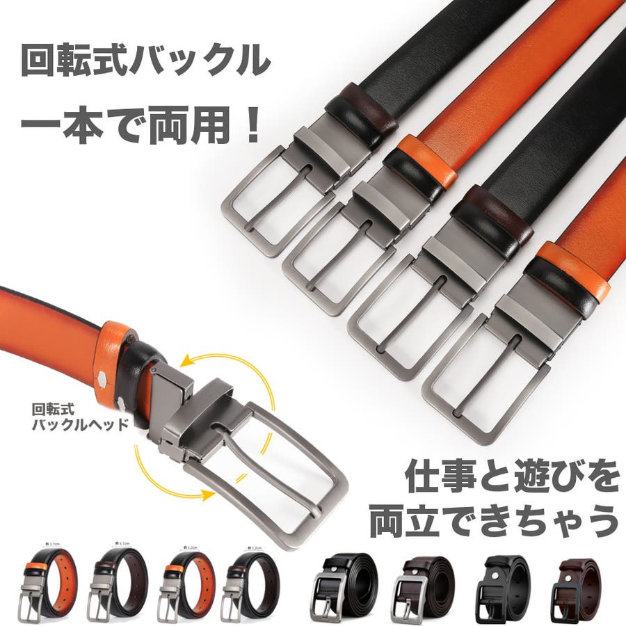 回転ベルト メンズベルト リバーシブル カジュアルベルト ビジネスベルト ビジカジ 紳士ベルト シンプル 黒 茶色 サイズ調整可能 プレゼント ギフト