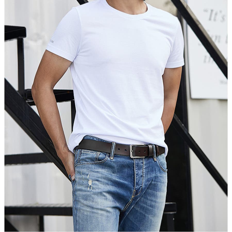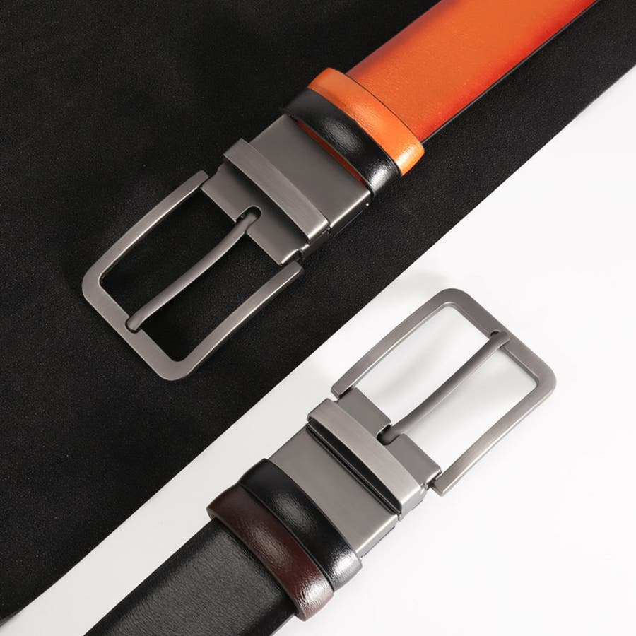カジュアルからビジネスまで幅広く活躍する、シンプルデザインの回転ベルト。