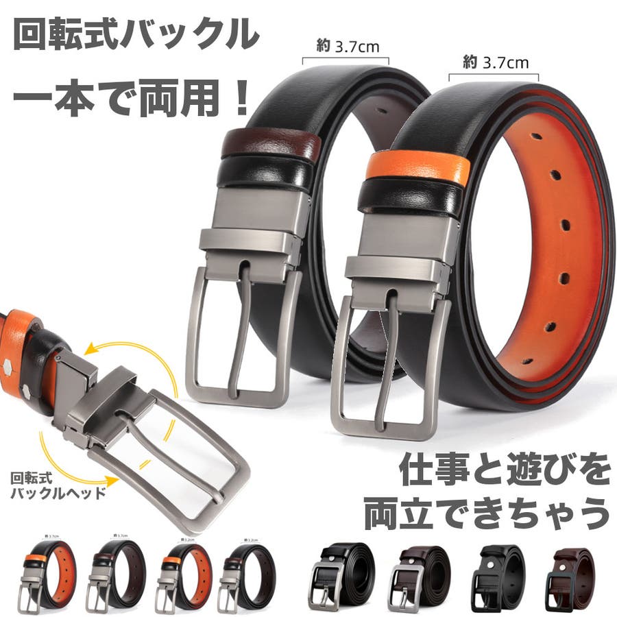回転ベルト メンズベルト リバーシブル カジュアルベルト ビジネスベルト ビジカジ 紳士ベルト シンプル 黒 茶色 サイズ調整可能 プレゼント ギフト
