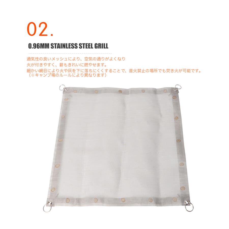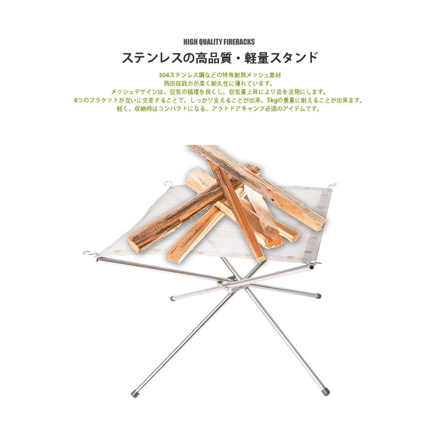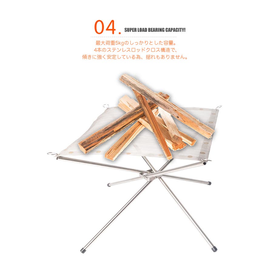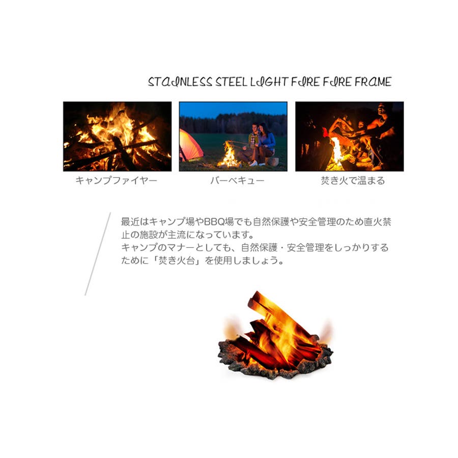 ・出来るだけ辺面の場所へ設置し、薪を重ね積みすぎないで下さい。・使用する時は、周囲に可燃性のものがないか確認し、風の強い日などは使用しないでください。・使用場所のルールを守ってご利用下さい。