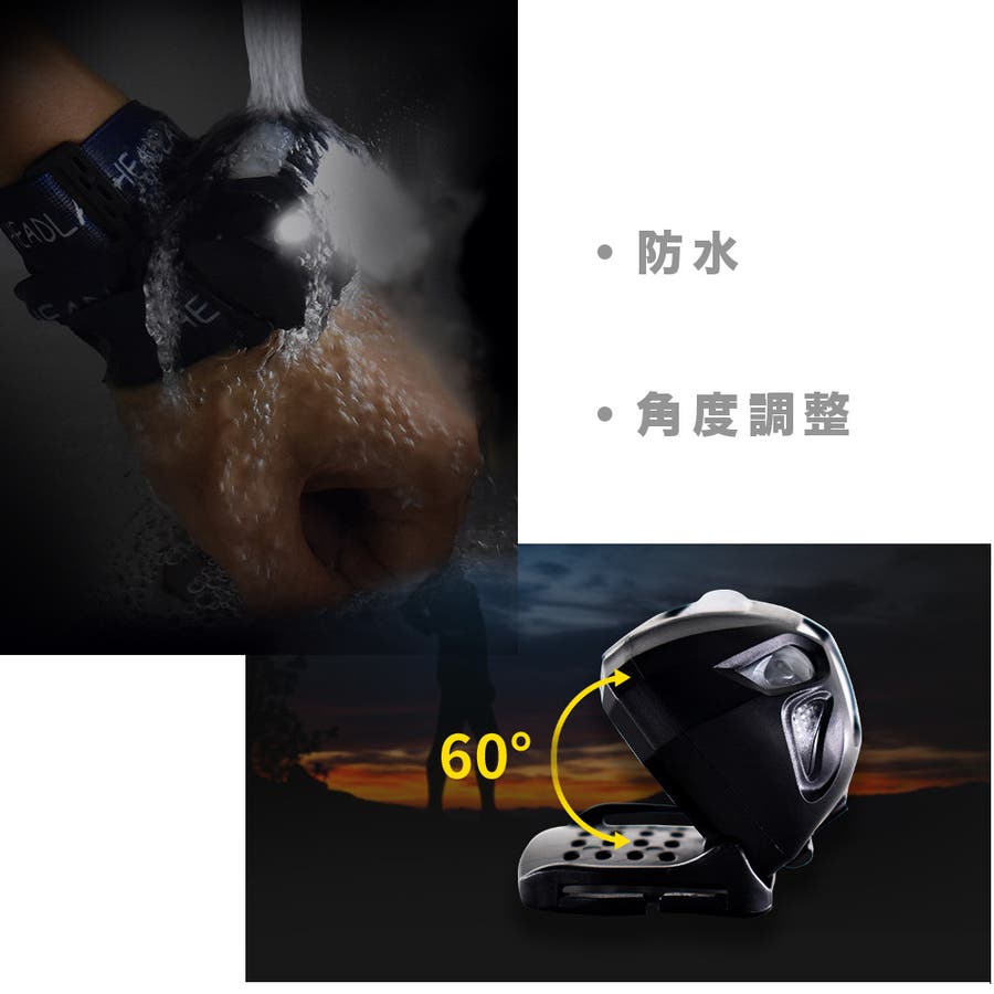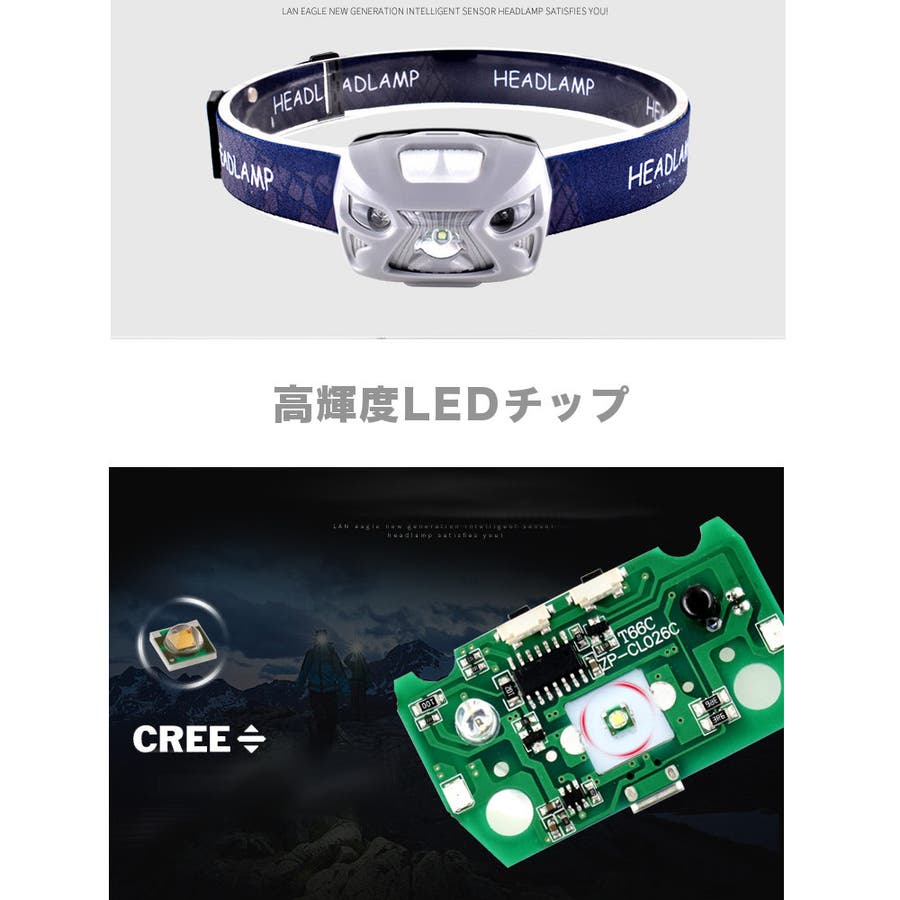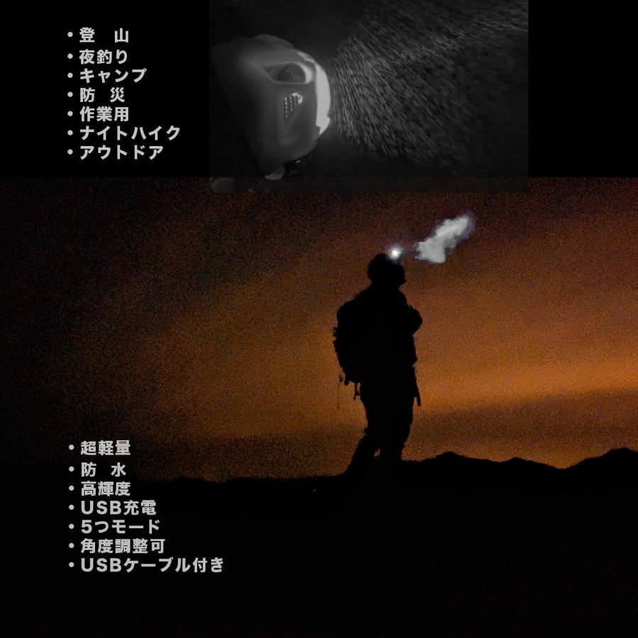 ナイトハイクや登山、ランニング、夜釣り、キャンプ、作業、防災などに最適・超軽量設計で頭に長時間着けていても疲れません・乾電池不要!USB充電で、長時間使用できます・超高輝度LED!とても明るいので夜道も足元をしっかり照らします・IPX5相当の防水仕様で雨天時や汗にも安心。(水中では使えません)・照射角度60度まで調節可能・センサーモードで手をかざすだけでオンオフ。手袋や汚れた手でもOK!・ゴムバンドは通気性が良く、柔らかい素材でフィット感抜群・万一の場合のSOS信号として・60°まで角度調節可・操作が単純で分かりやすい!スイッチを1回押せば消灯可能