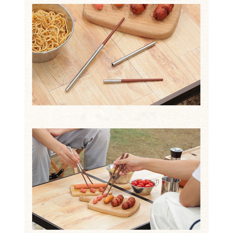 登山やキャンプなどのアウトドアで大活躍の、組み立て式の木製箸。