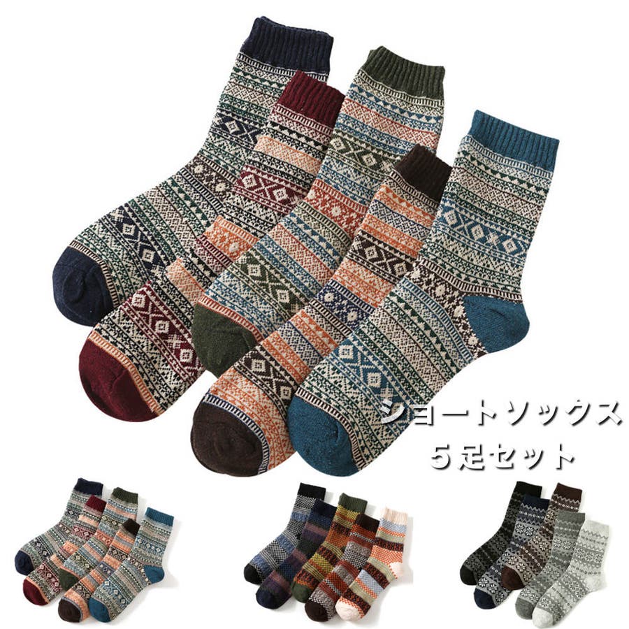 ジャガードソックス 5足SET 厚い