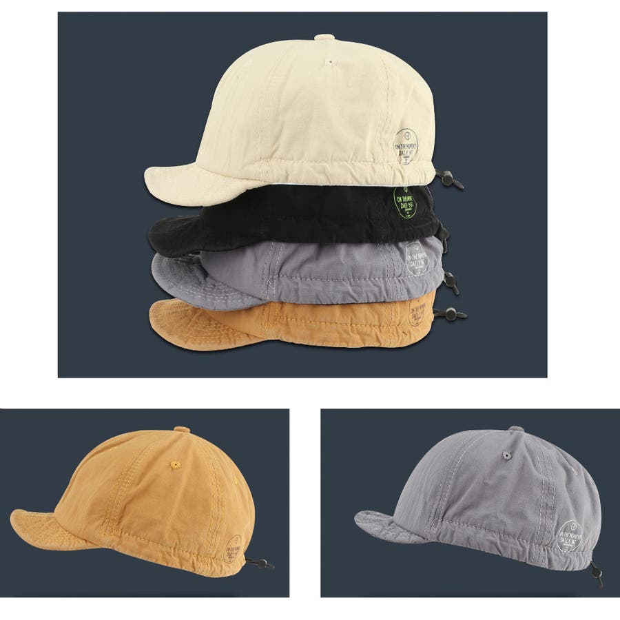 主張し過ぎないさりげないデザインで、どんなスタイルでも合わせやすい、ツバが短いタイプのキャップシンプルでストリートカジュアルなデザインは、ユニセックスで使えますサイズはドローコードで調節可能