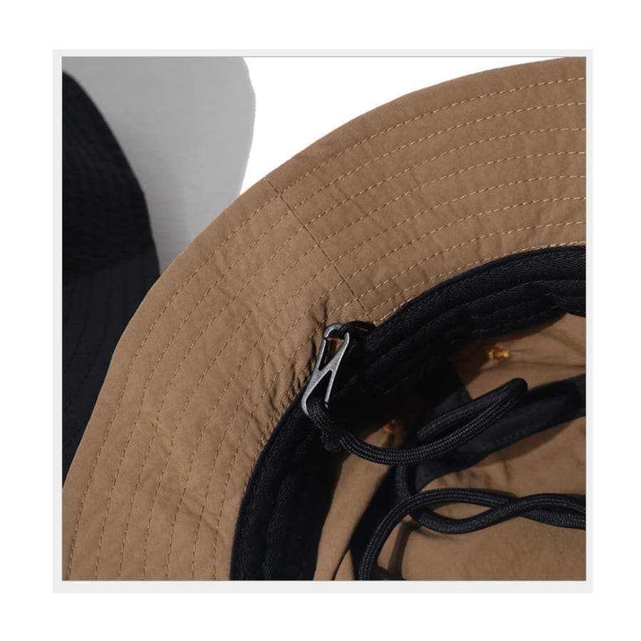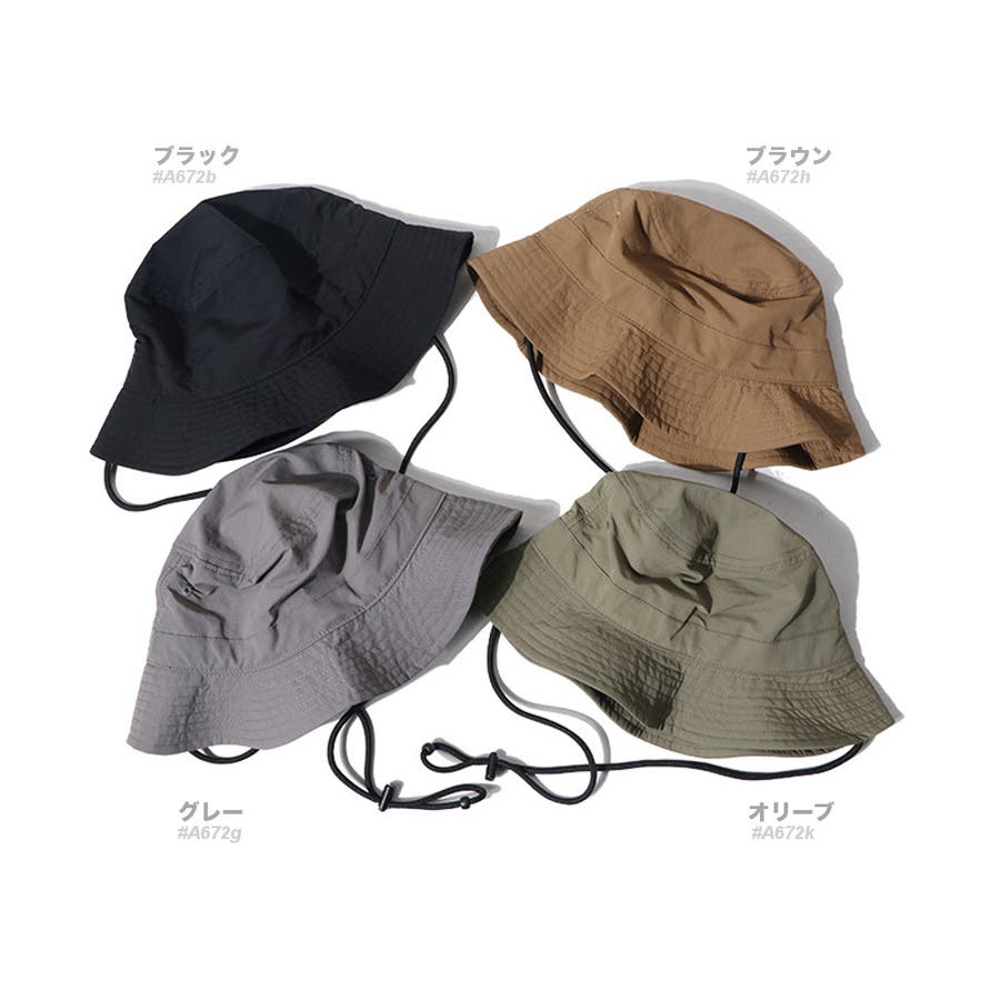 アウトドアには欠かせないあご紐付きで、風に飛ばされる心配がありません