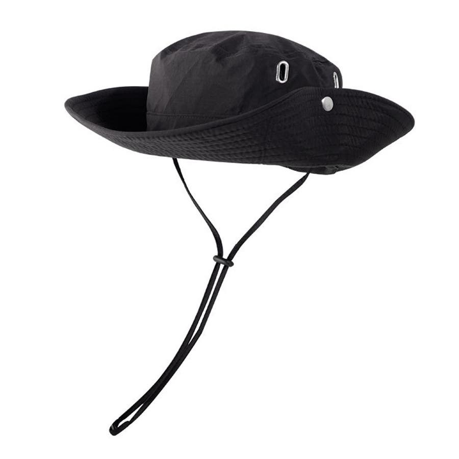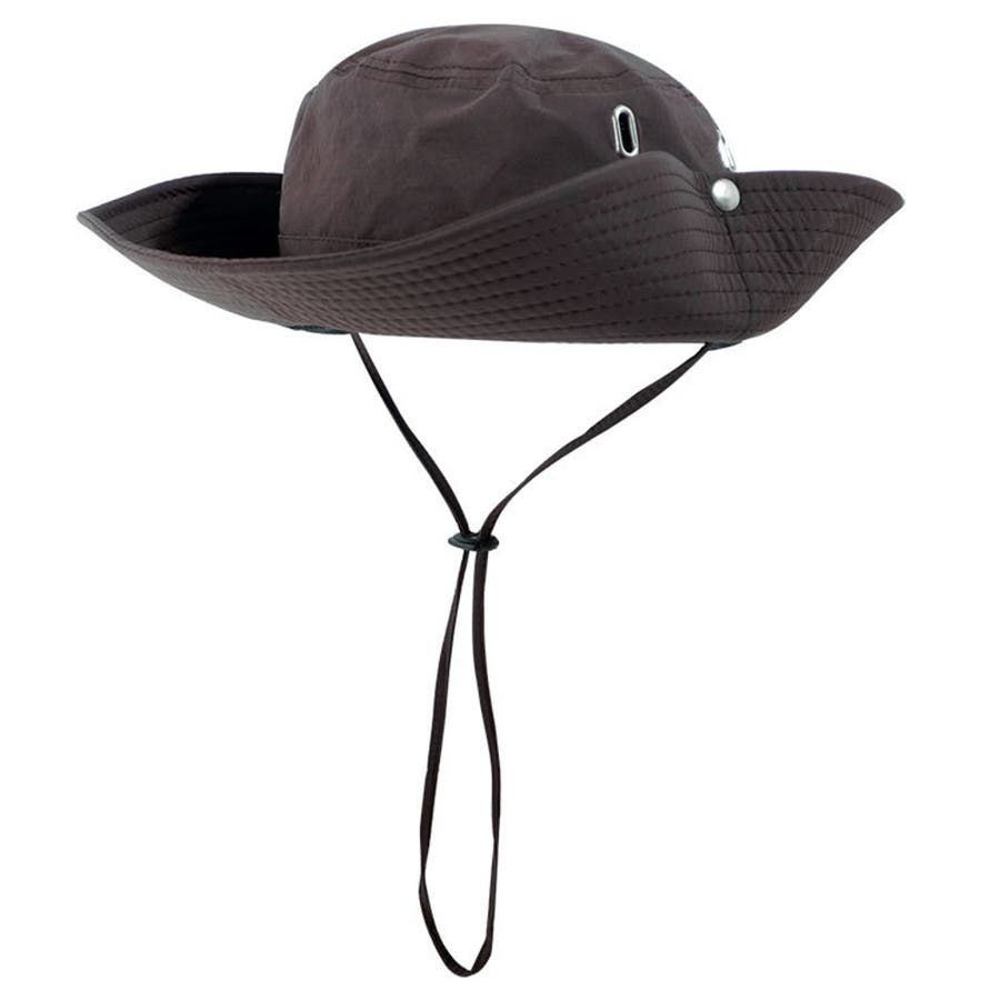 サイドのスナップボタンを留めるとワイルドなテンガロンハット風に。