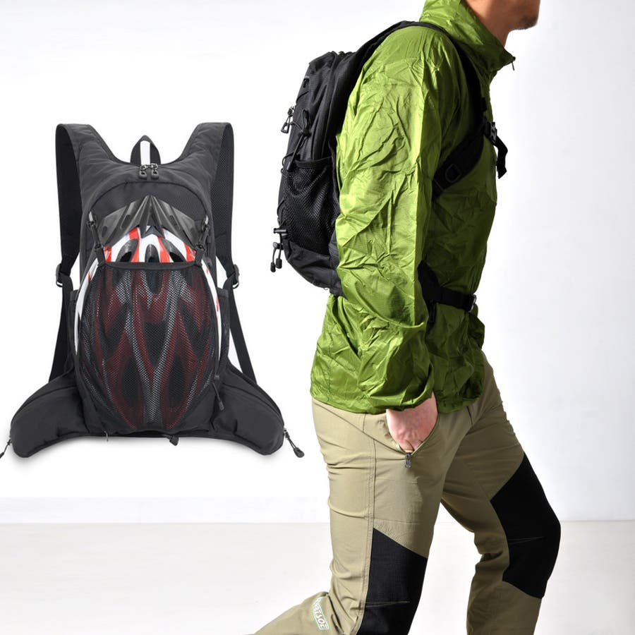 ヘルメット専用のメッシュポケット、ウエストベルト両サイドの