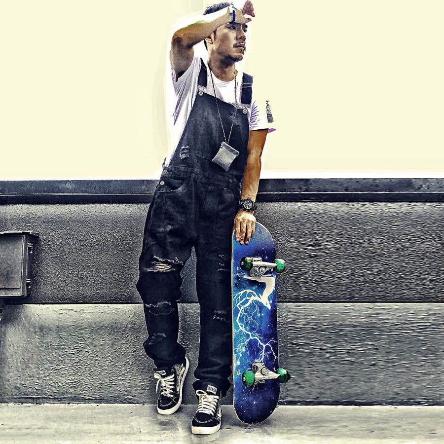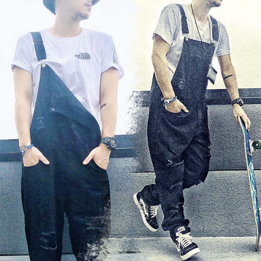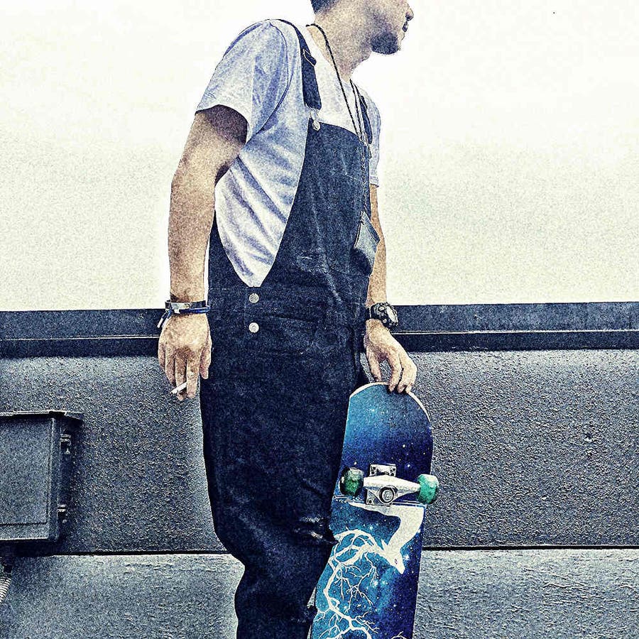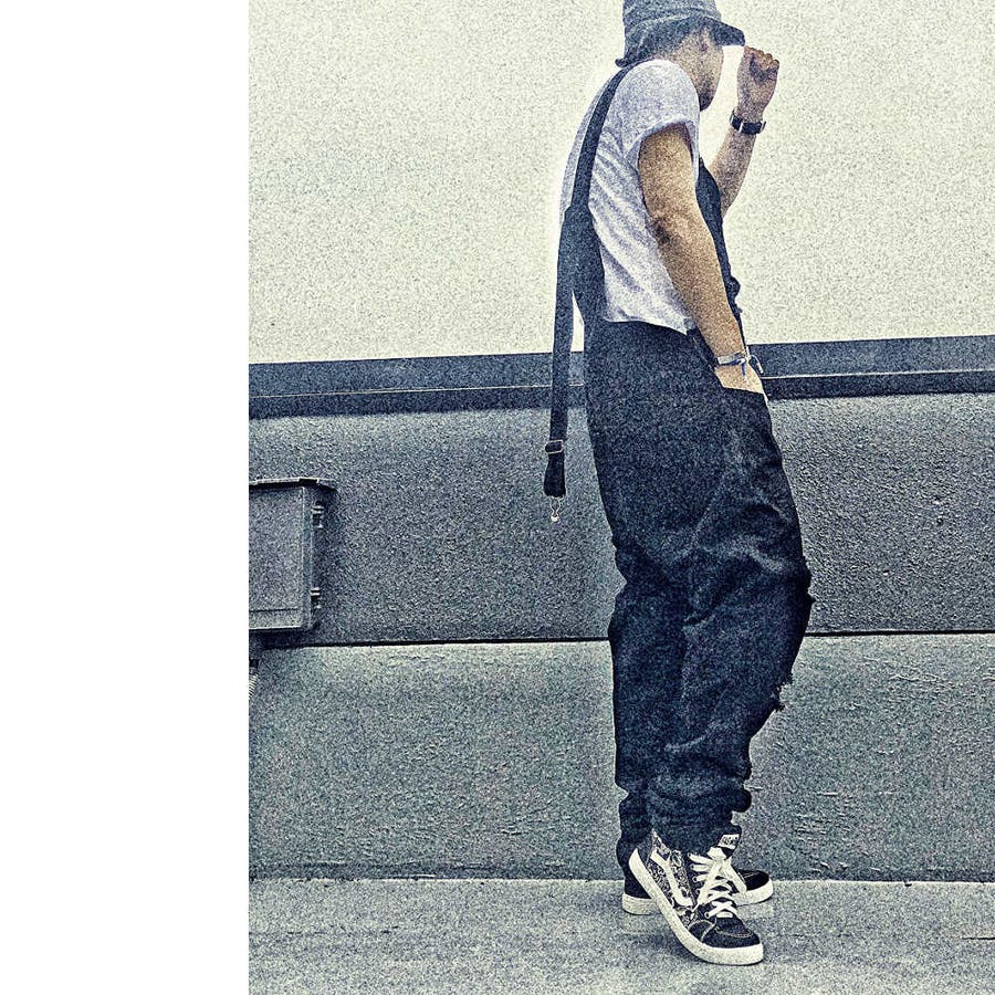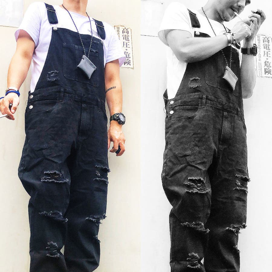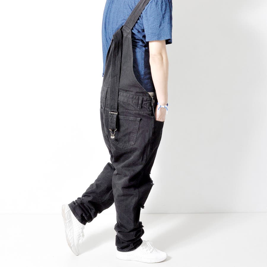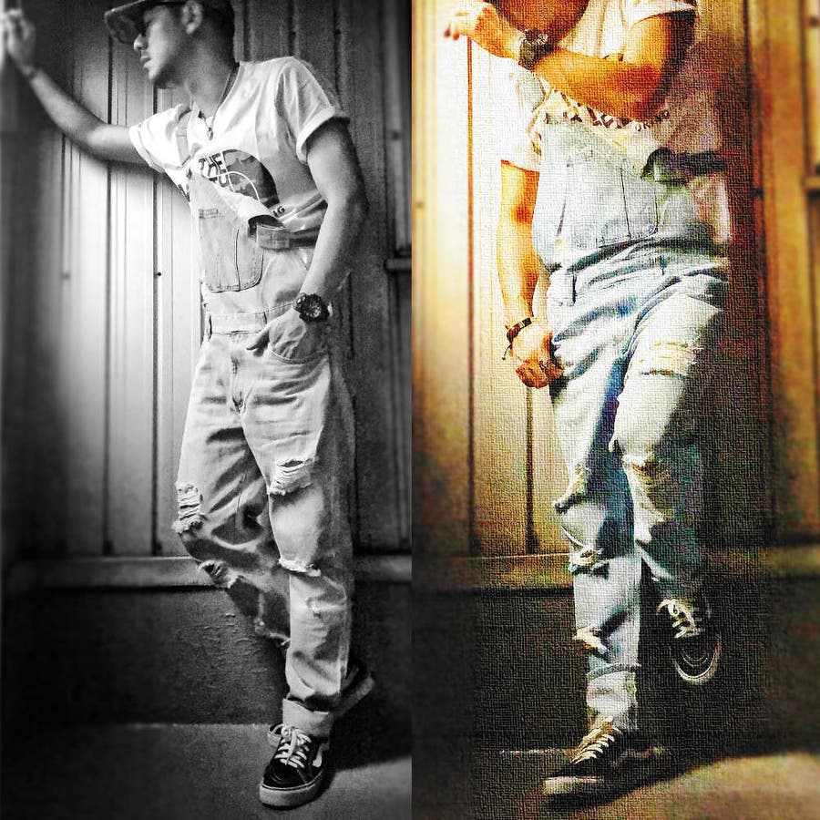 ダメージ加工がさりげなくクールな印象を放つデニムオーバーオール。