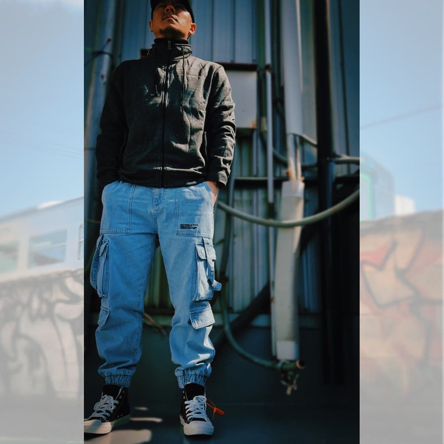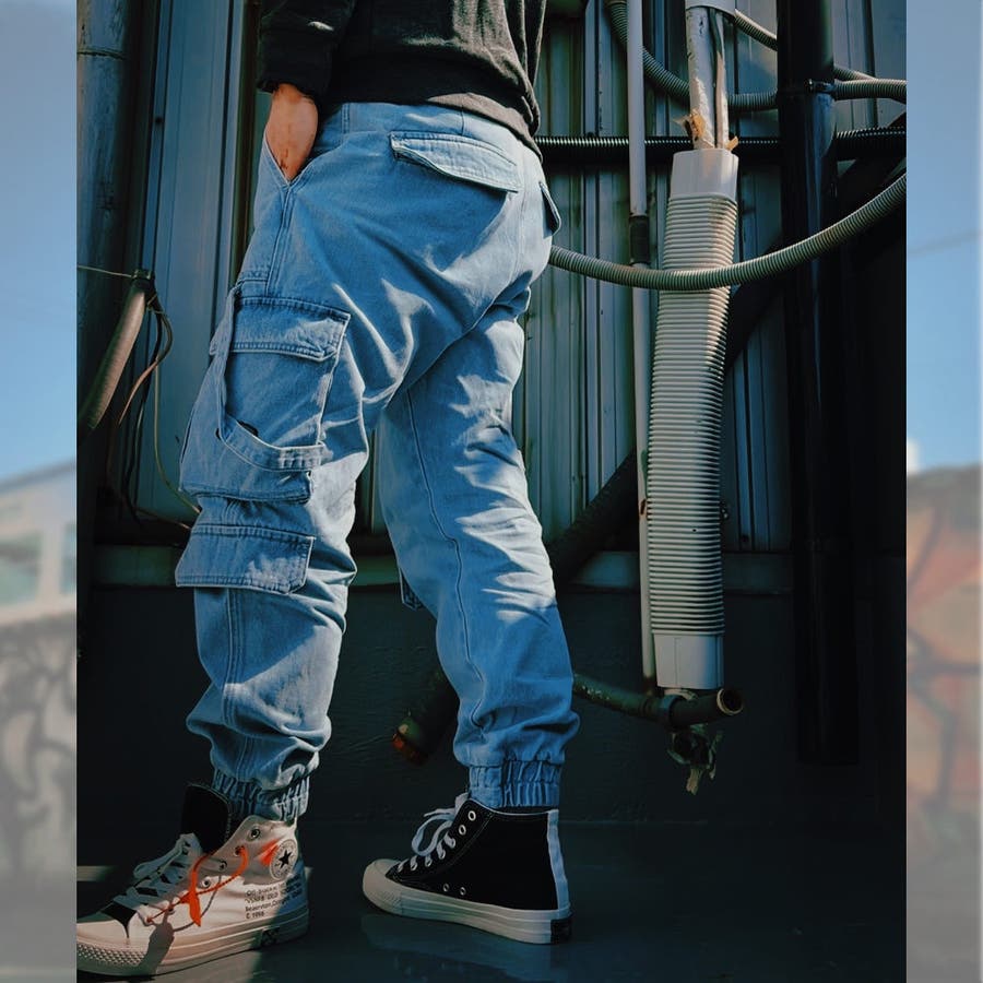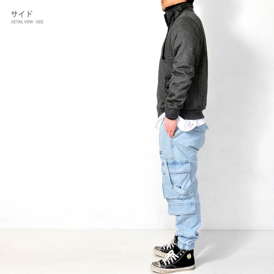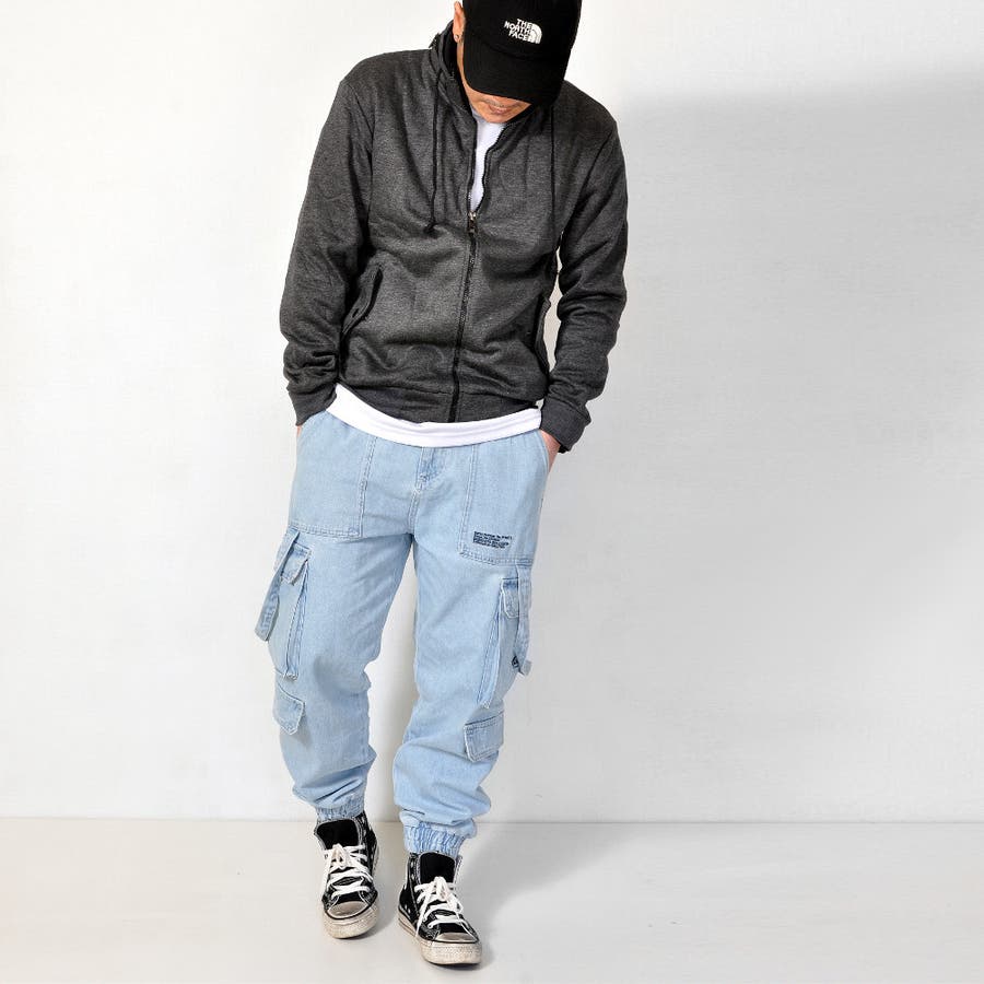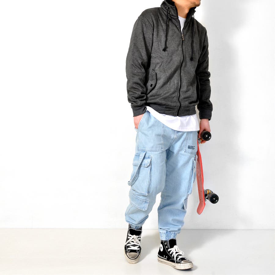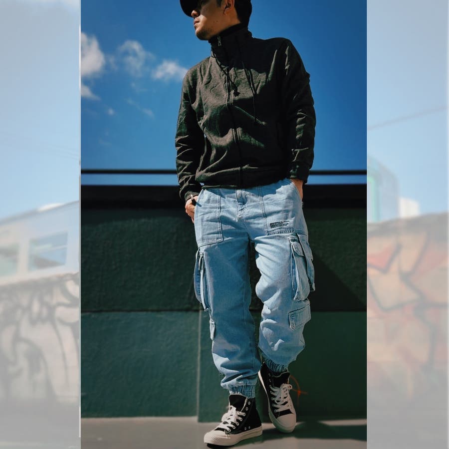 しっかりしたデニムを使った、ルーズシルエットのデニムカーゴパンツ